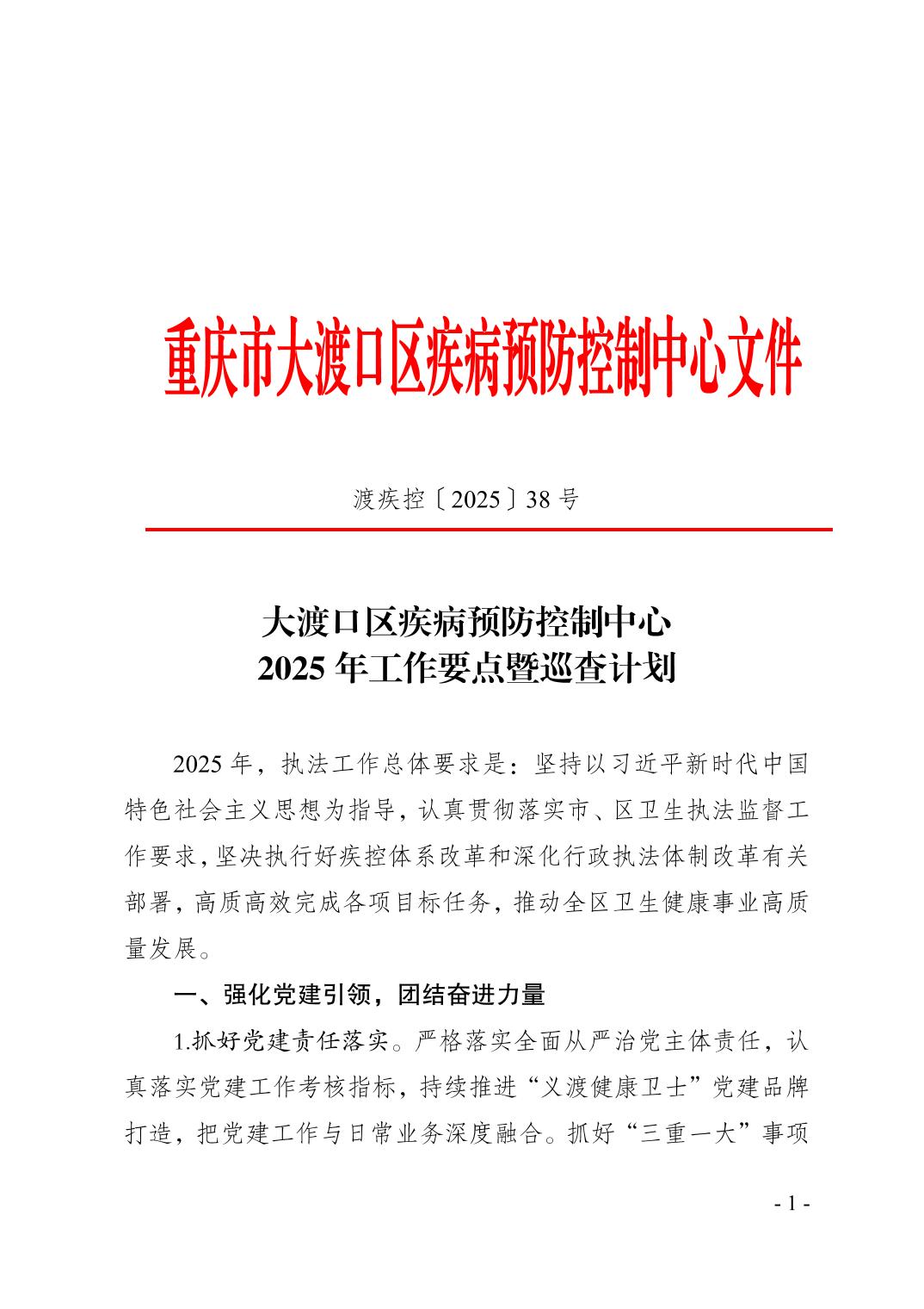 大渡口区疾病预防控制中心2025年工作要点暨巡查计划.docx