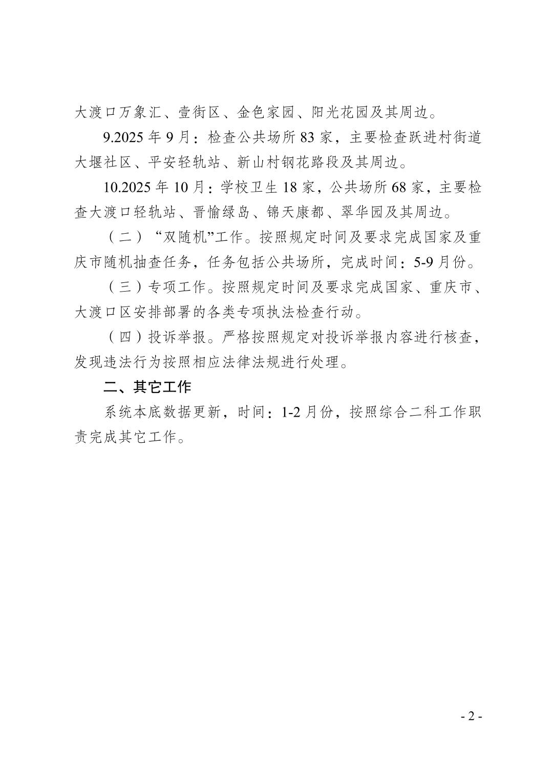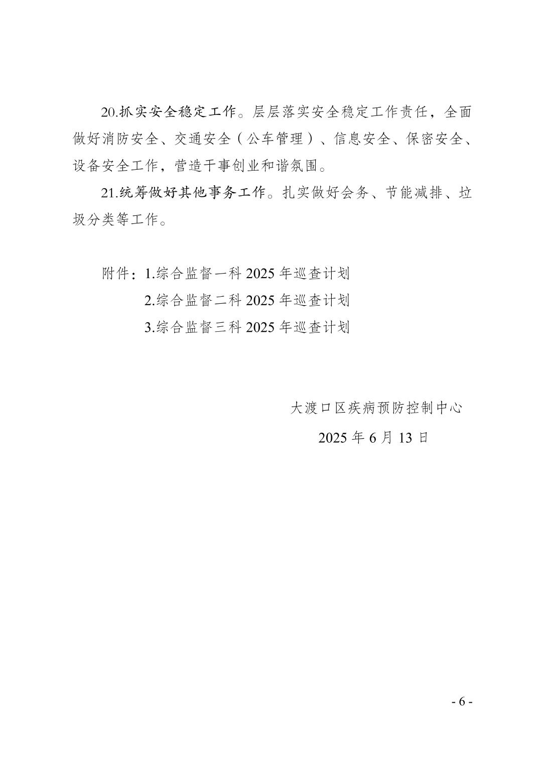 大渡口区疾病预防控制中心2025年工作要点暨巡查计划