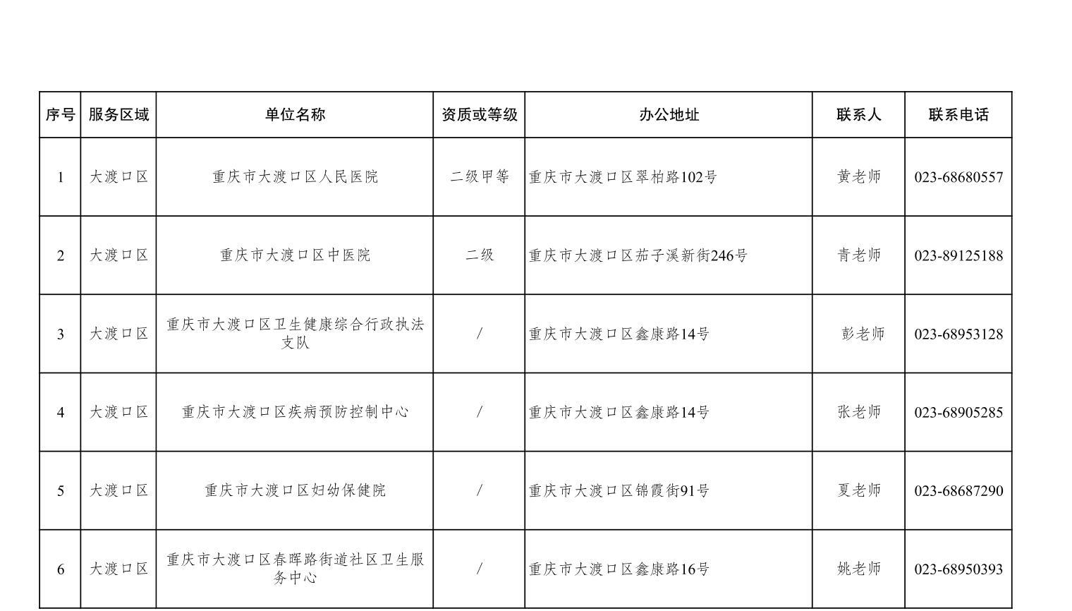 重庆市大渡口区卫生健康领域公共企事业单位