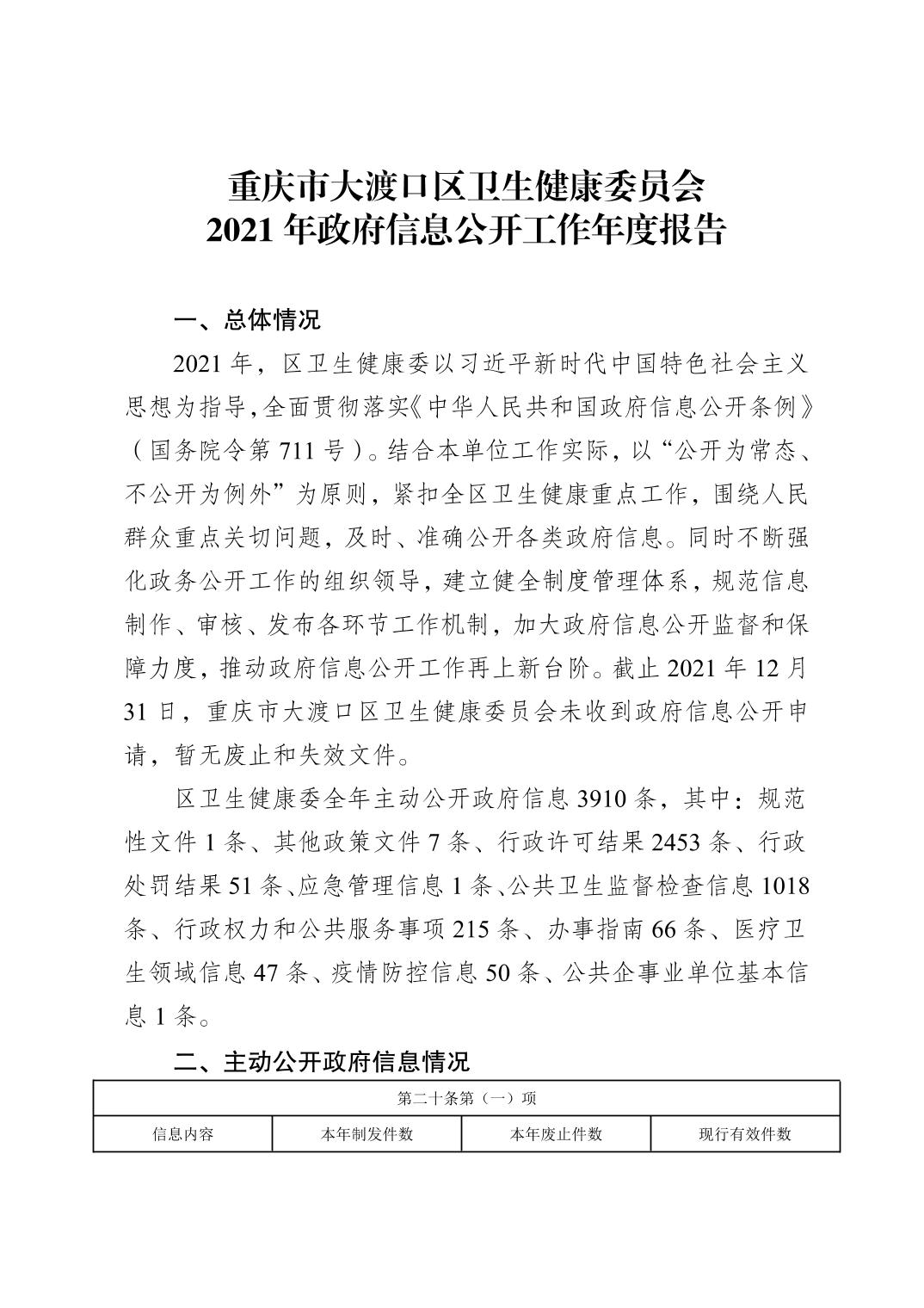 重庆市大渡口区卫生健康委员会2021年政府信息公开工作年度报告.pdf