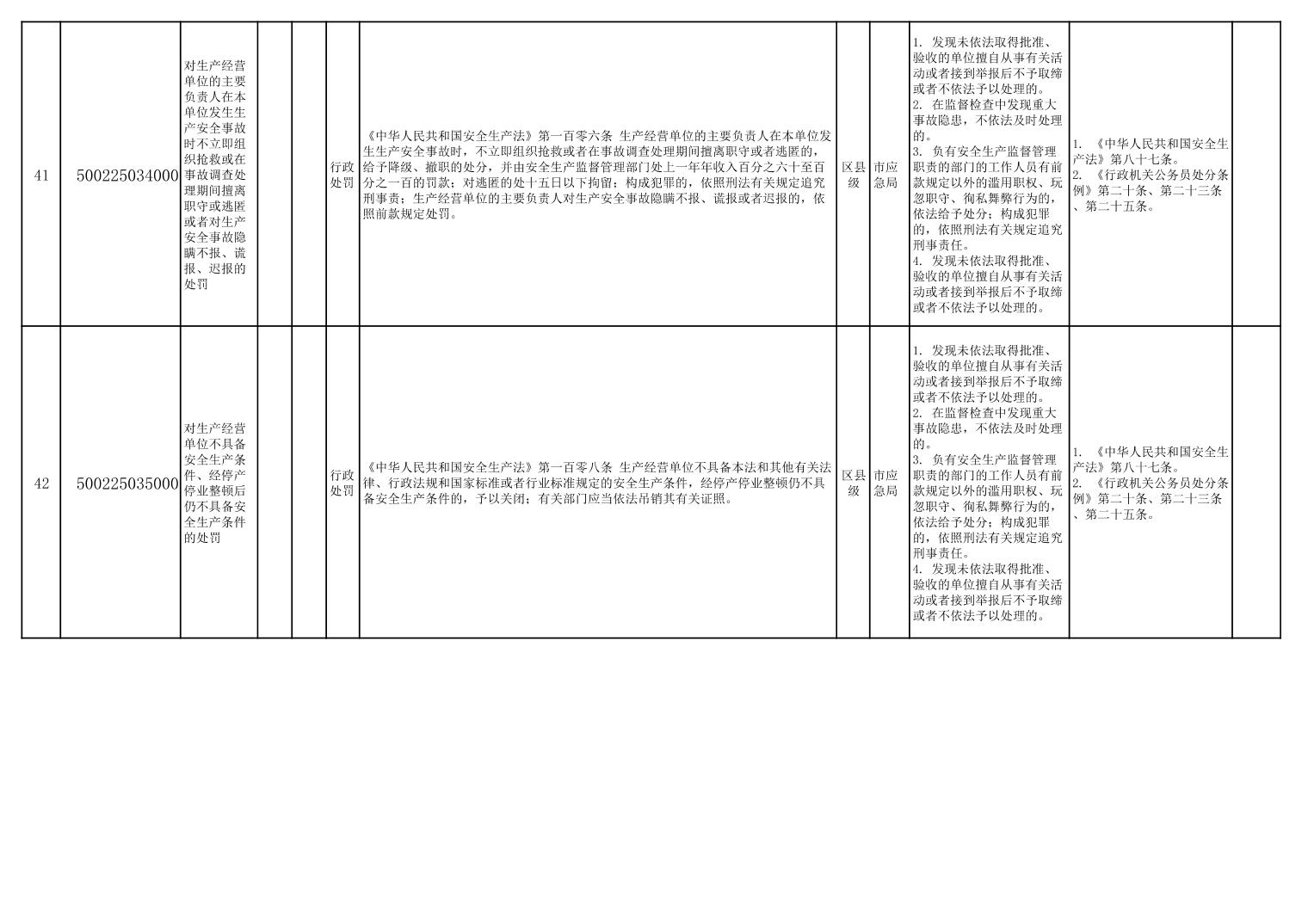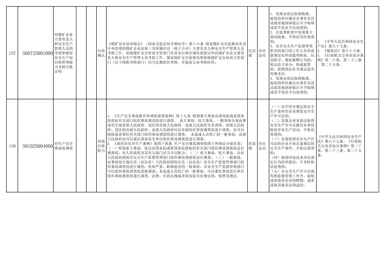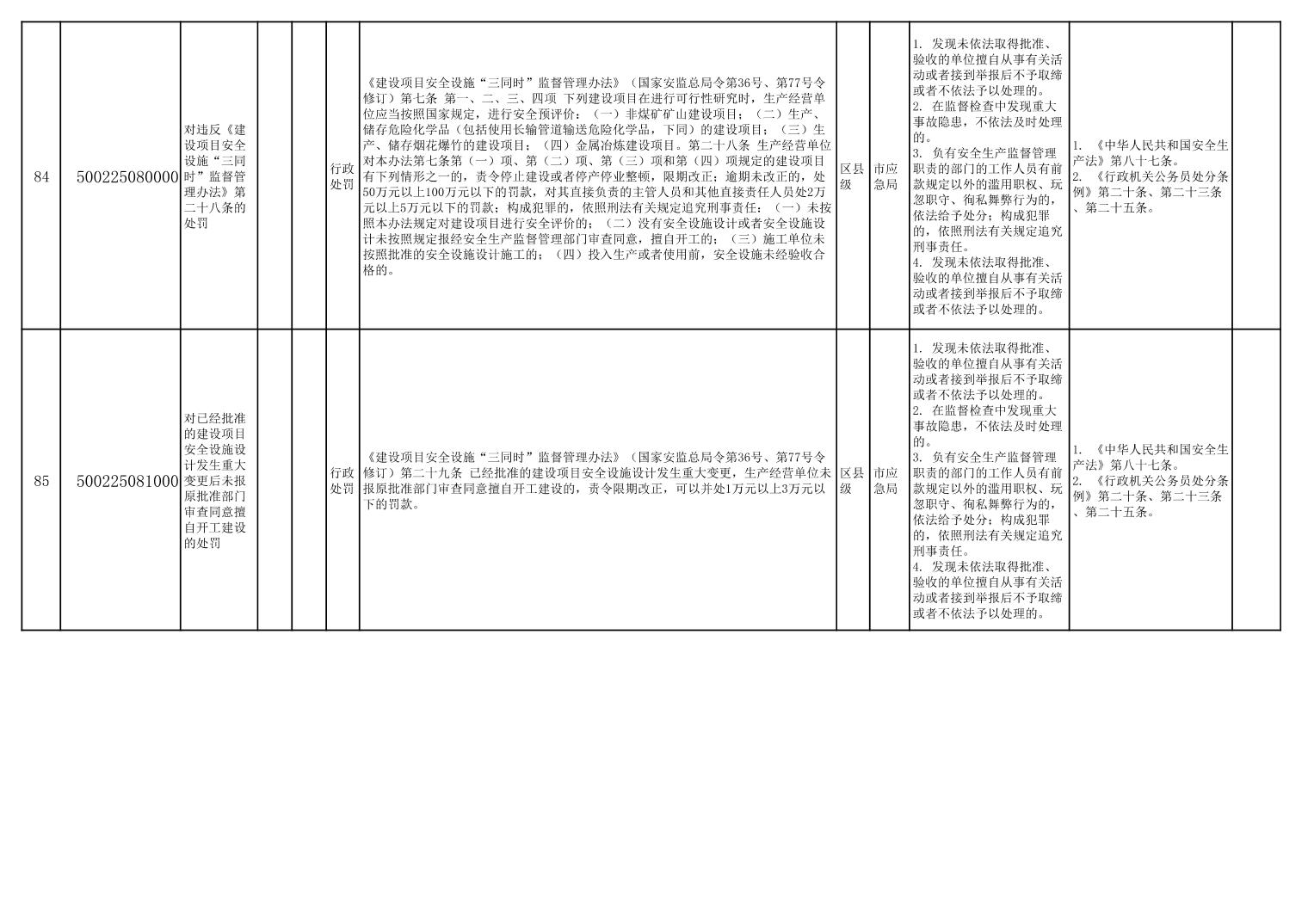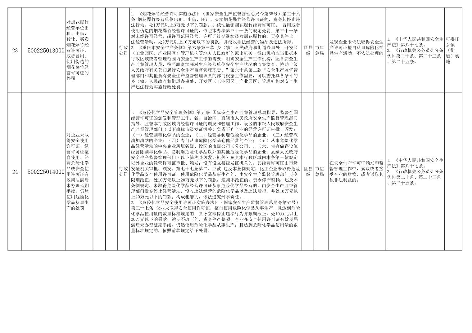 重庆市大渡口区应急管理局2023年度行政权力和责任事项清单