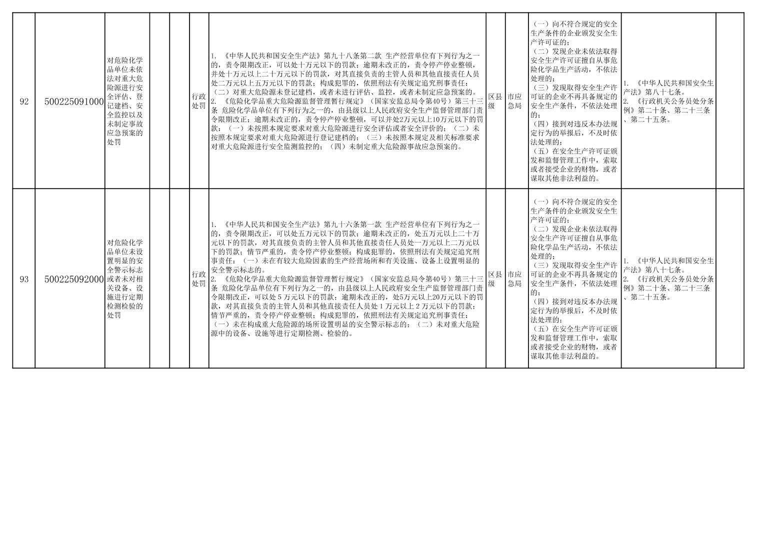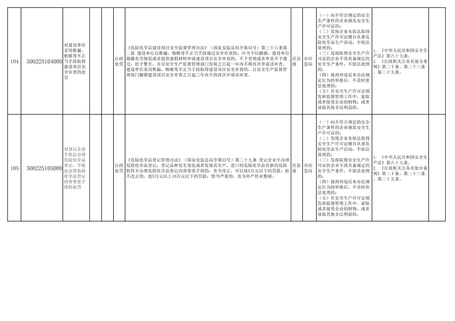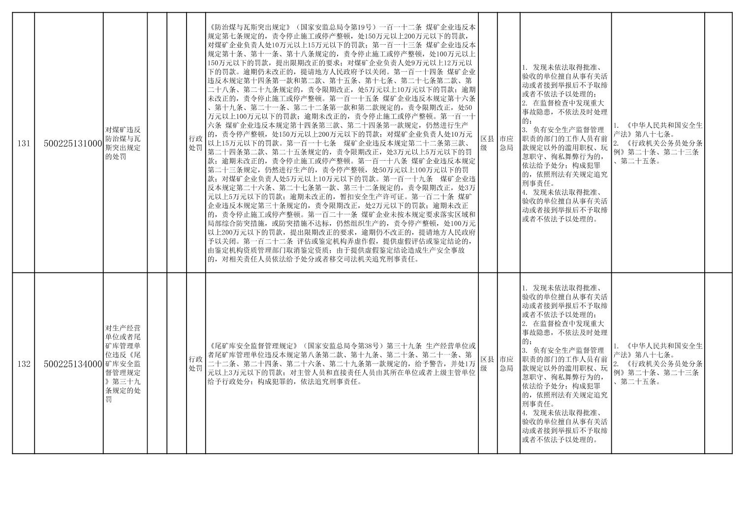 重庆市大渡口区应急管理局2023年度行政权力和责任事项清单