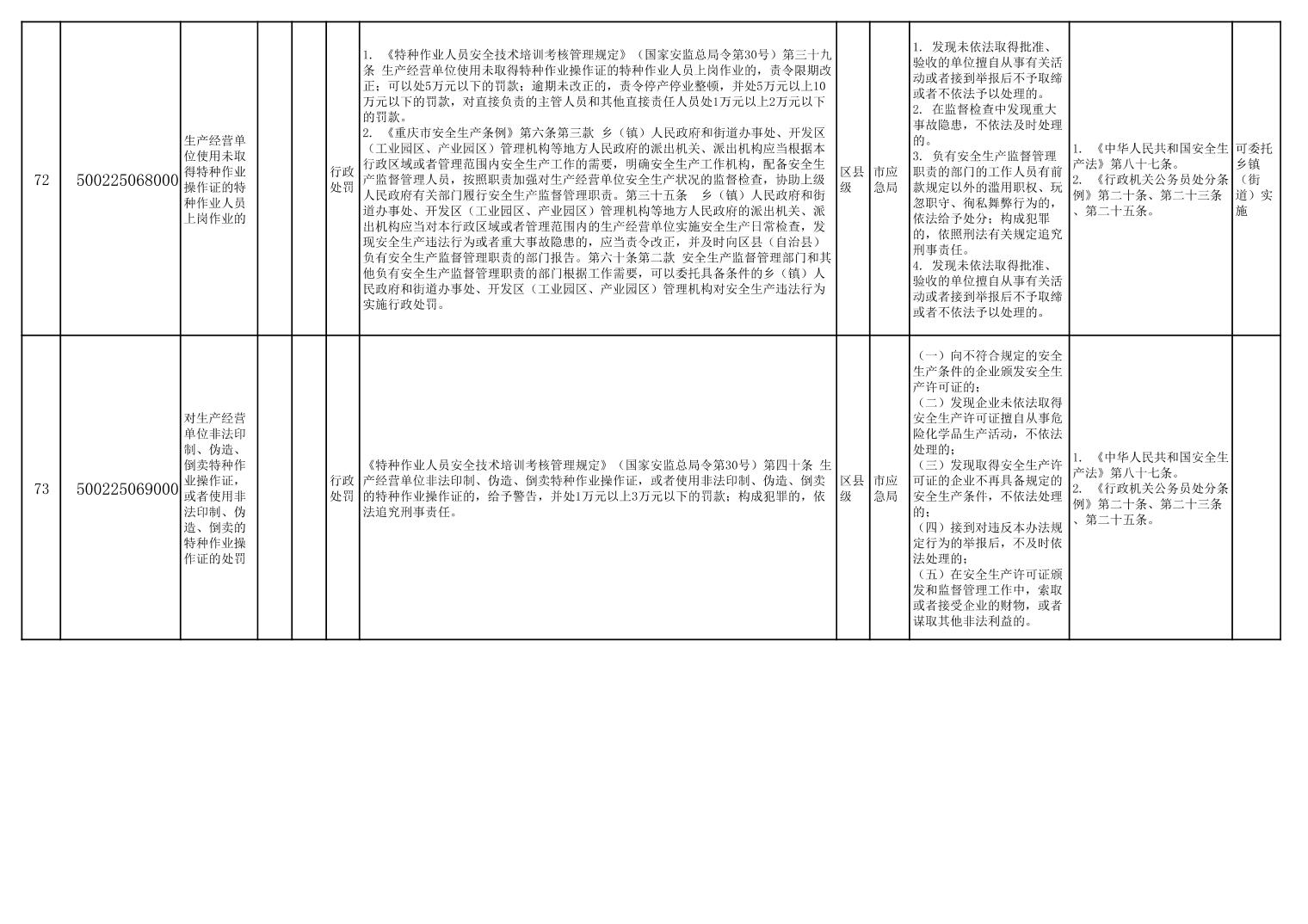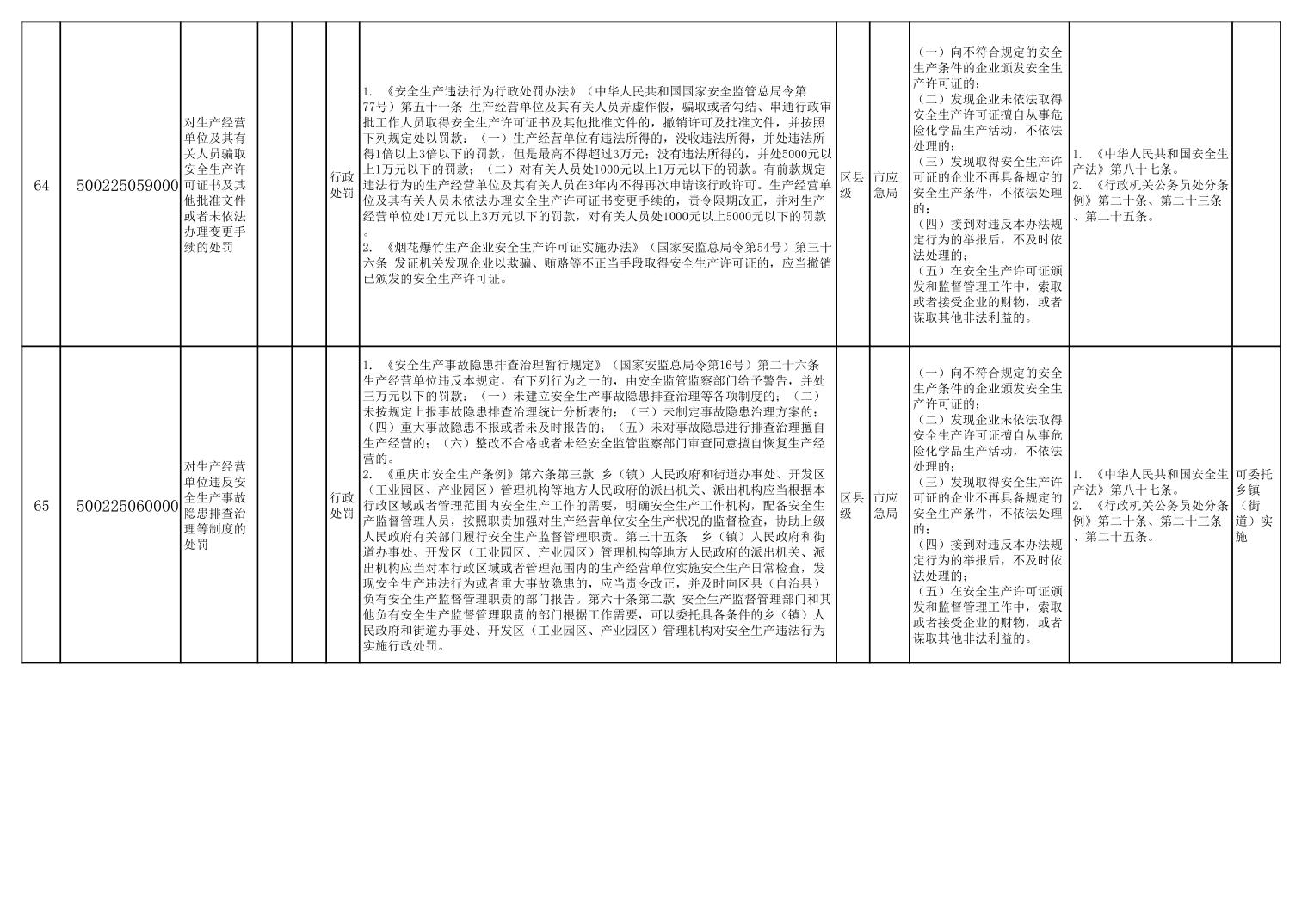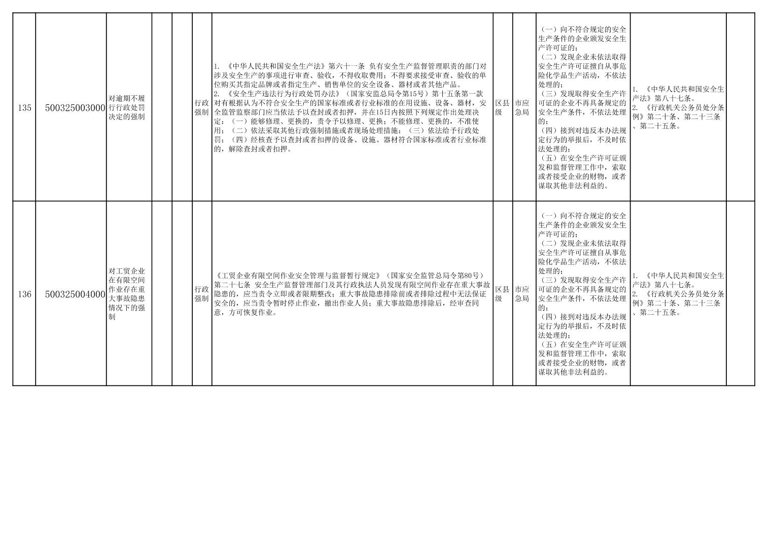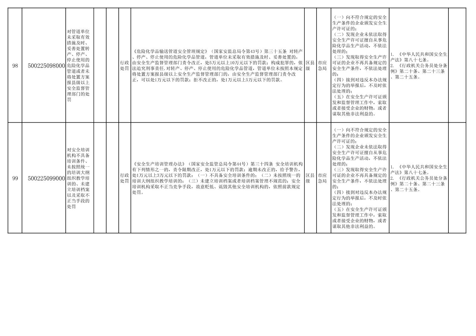 重庆市大渡口区应急管理局2023年度行政权力和责任事项清单
