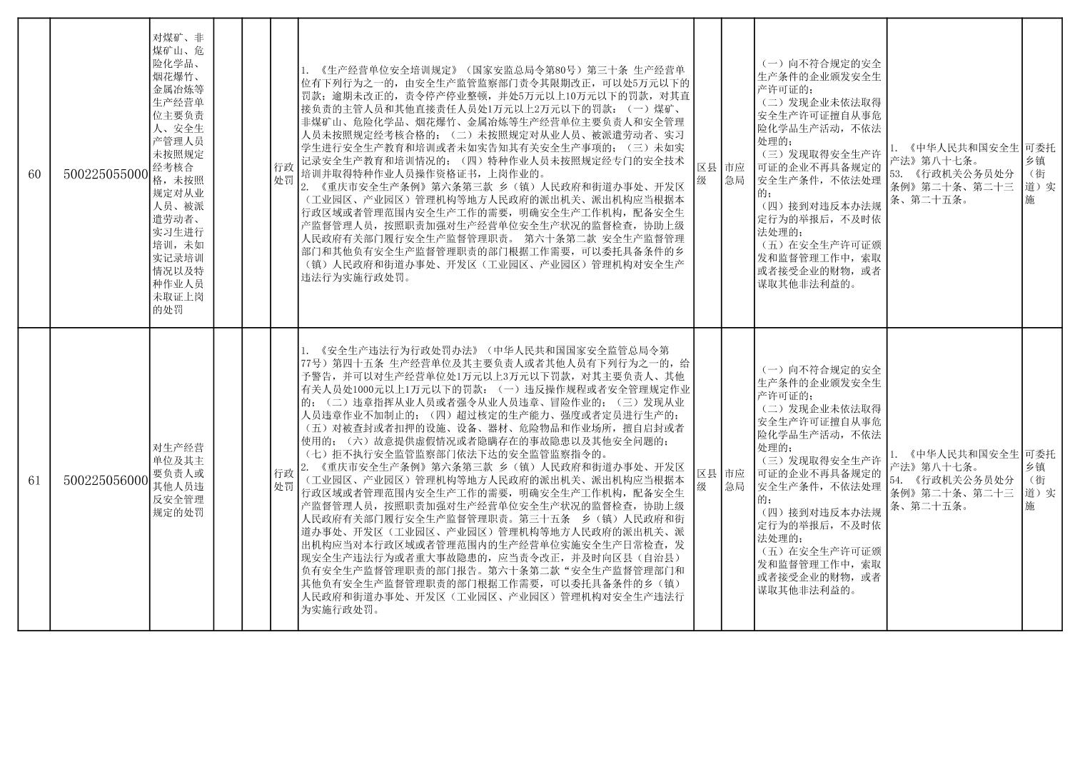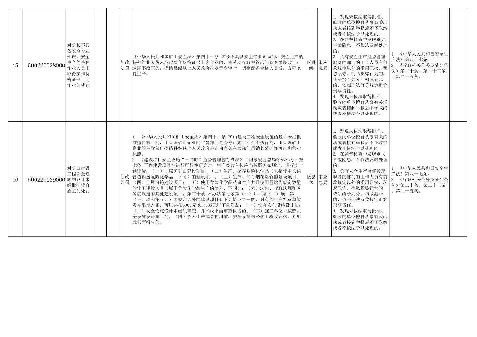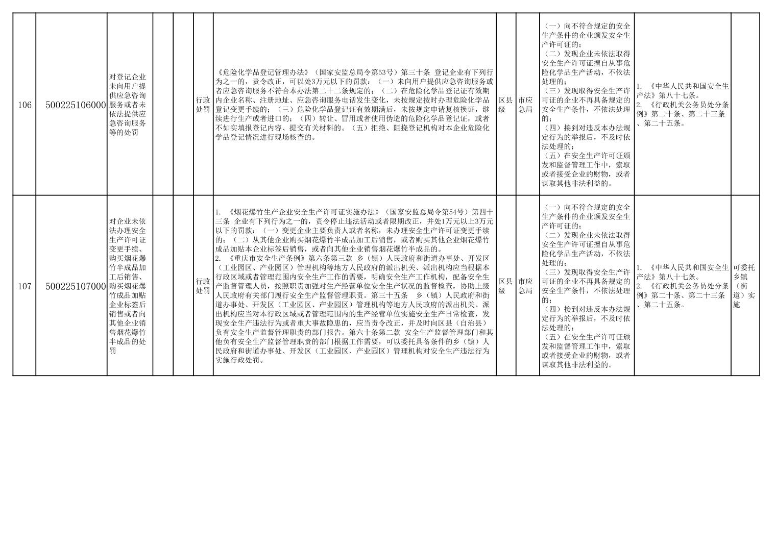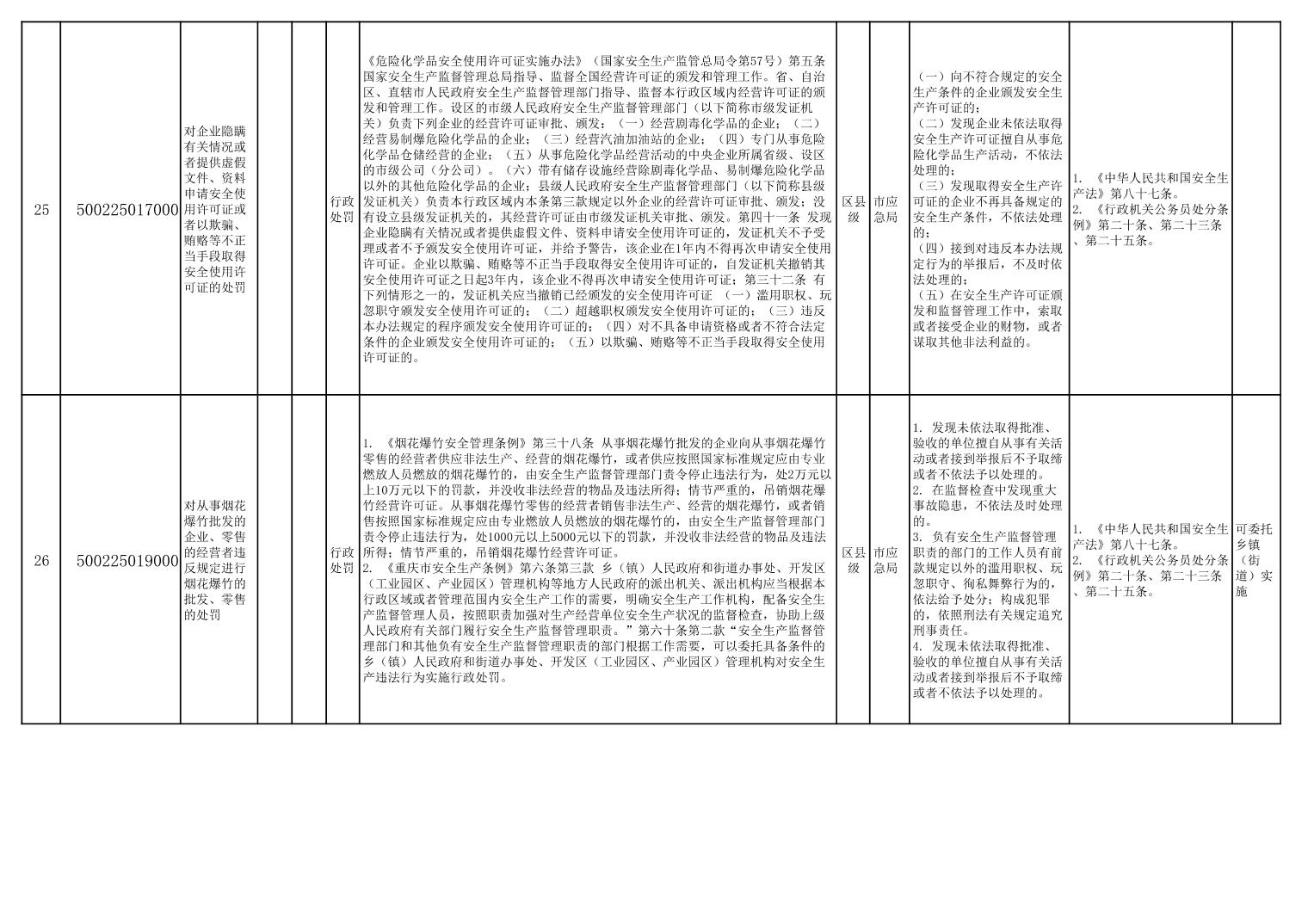 重庆市大渡口区应急管理局2024年度行政权力和责任事项清单