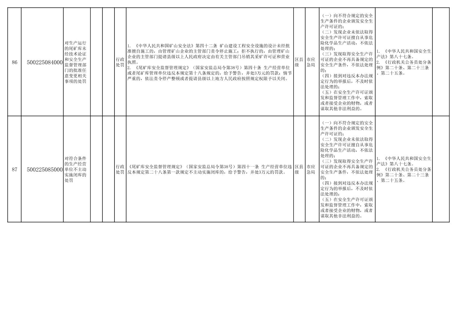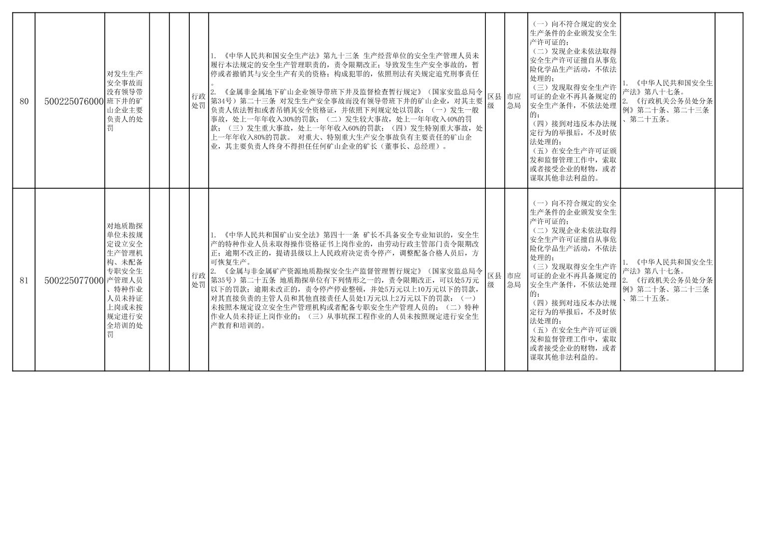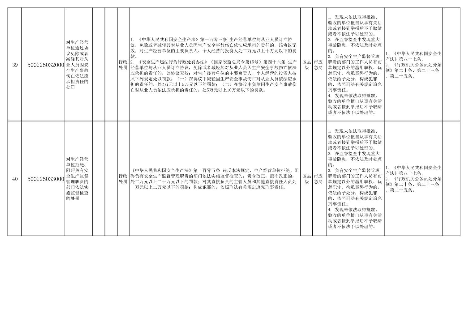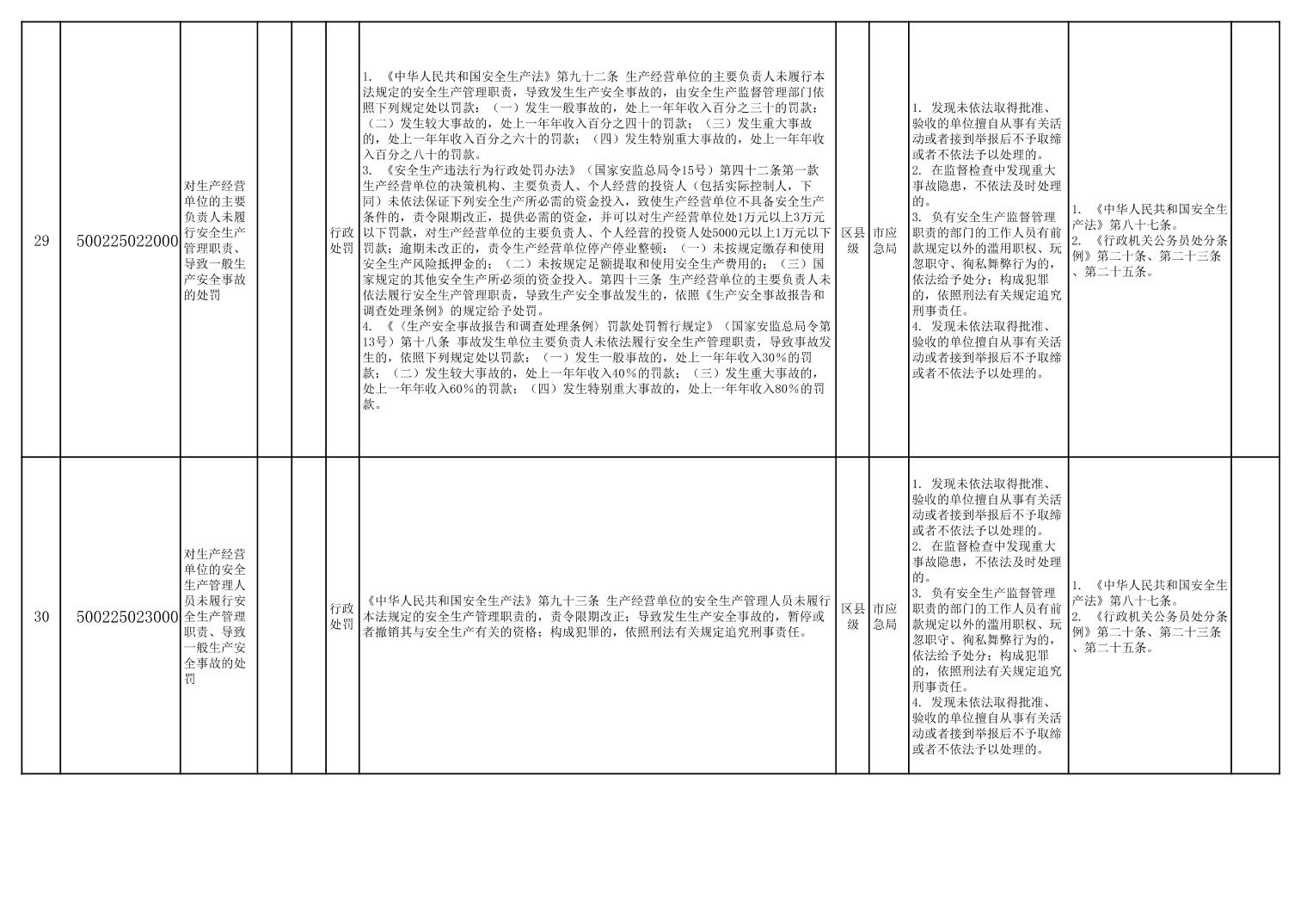 重庆市大渡口区应急管理局2024年度行政权力和责任事项清单