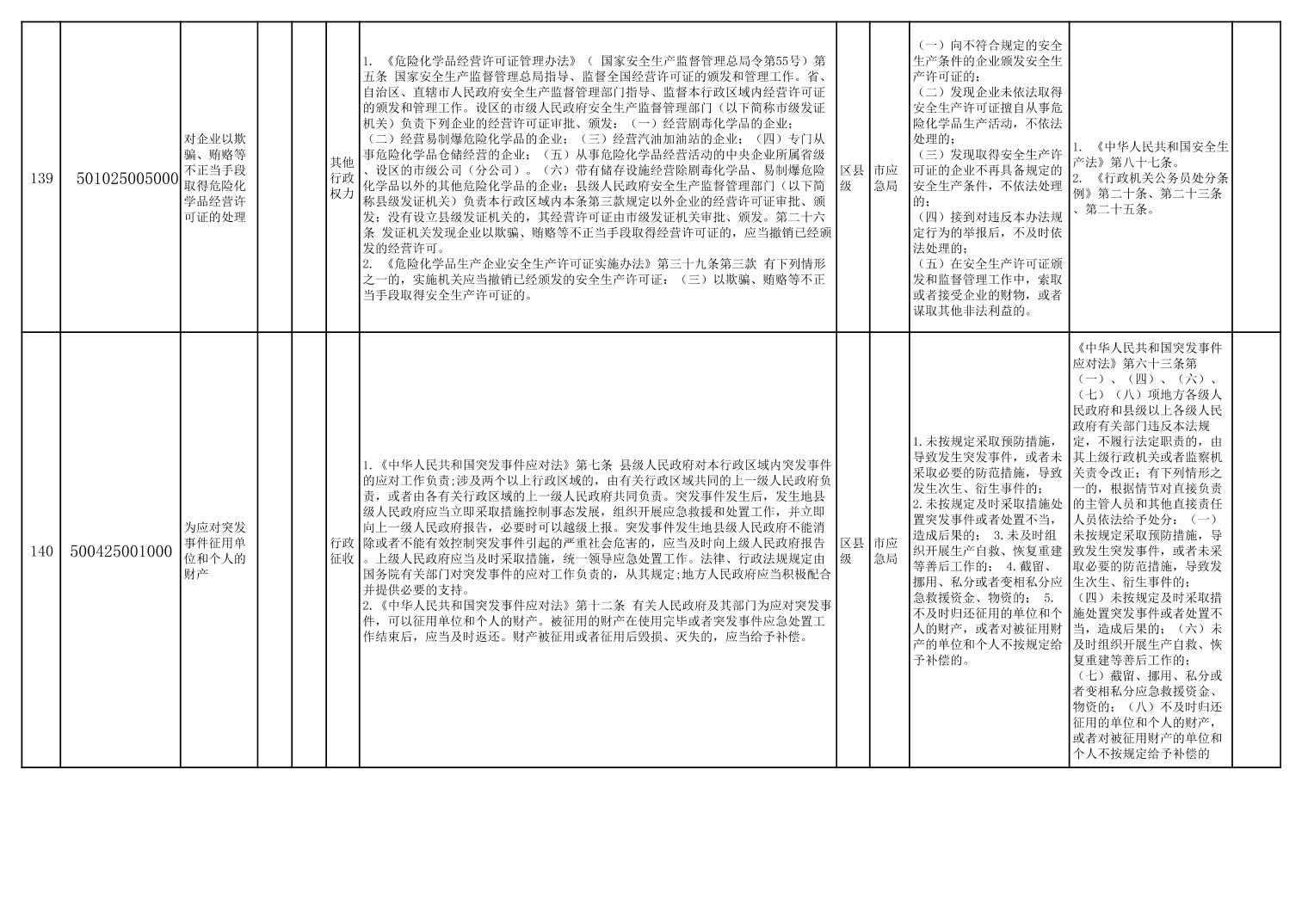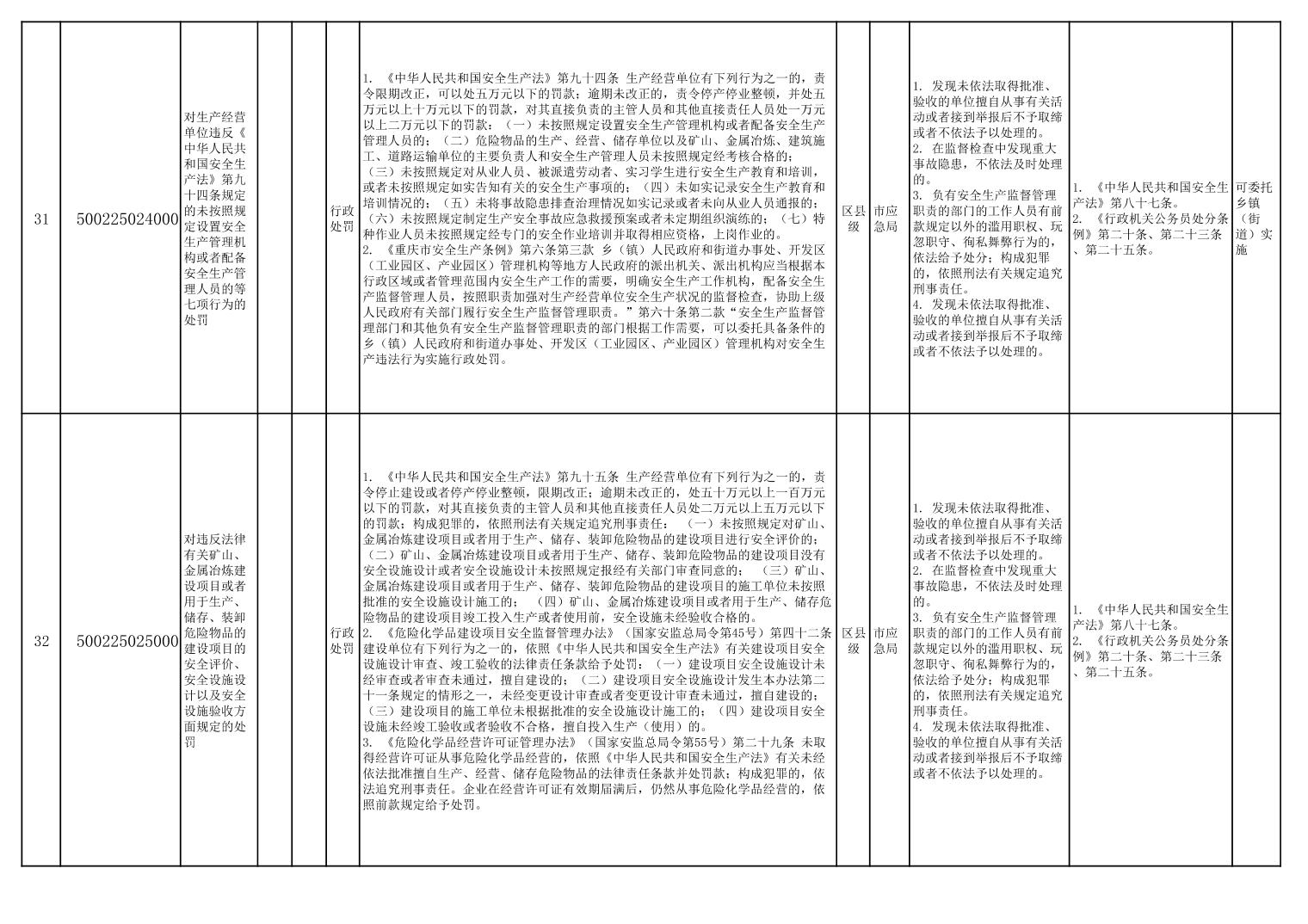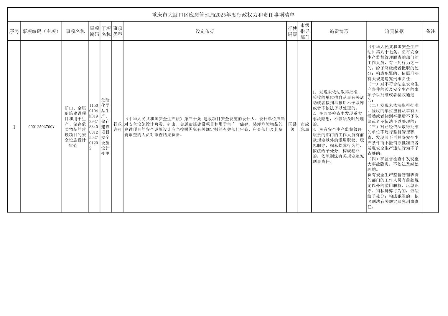 重庆市大渡口区应急管理局2025年度行政权力和责任事项清单