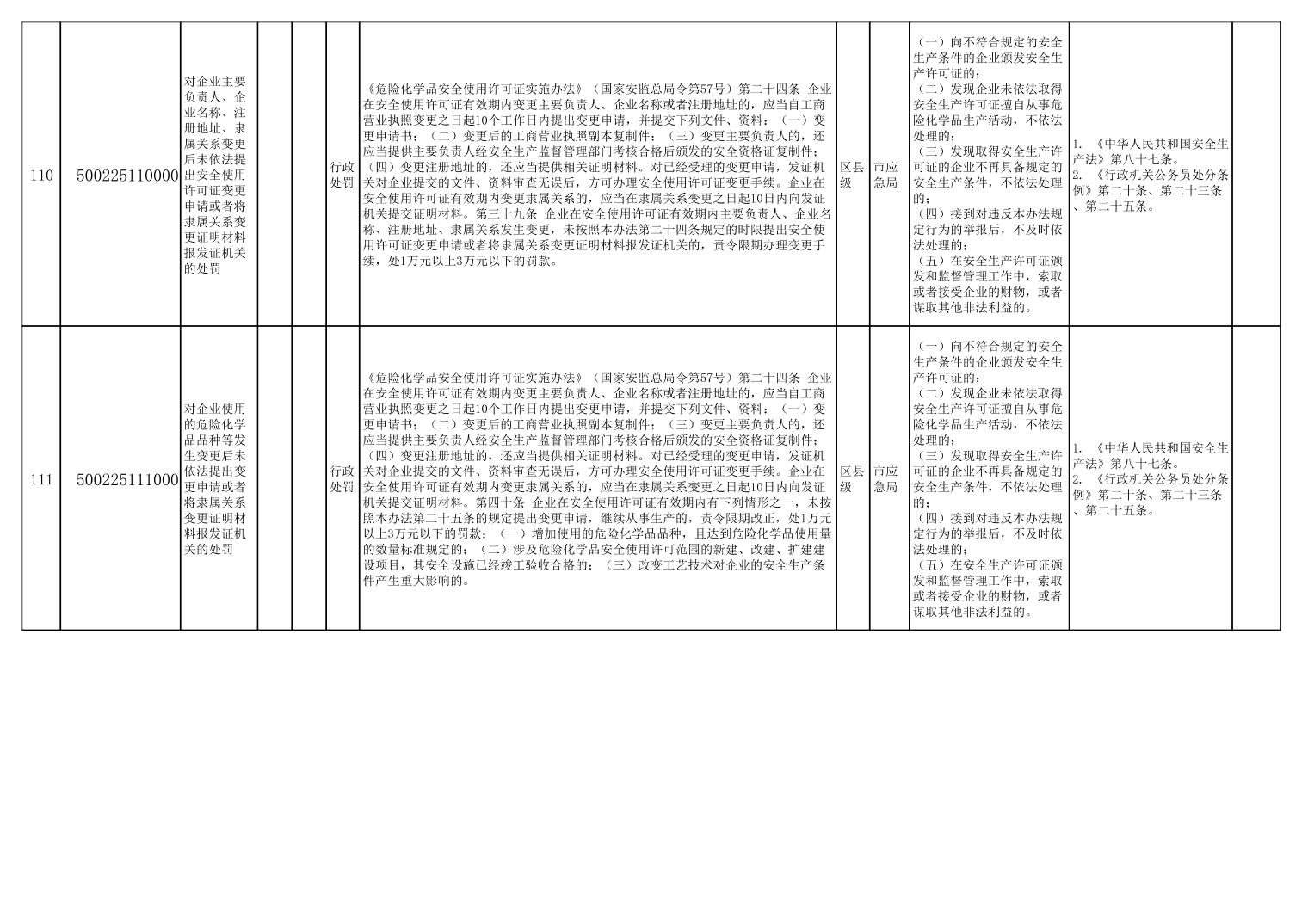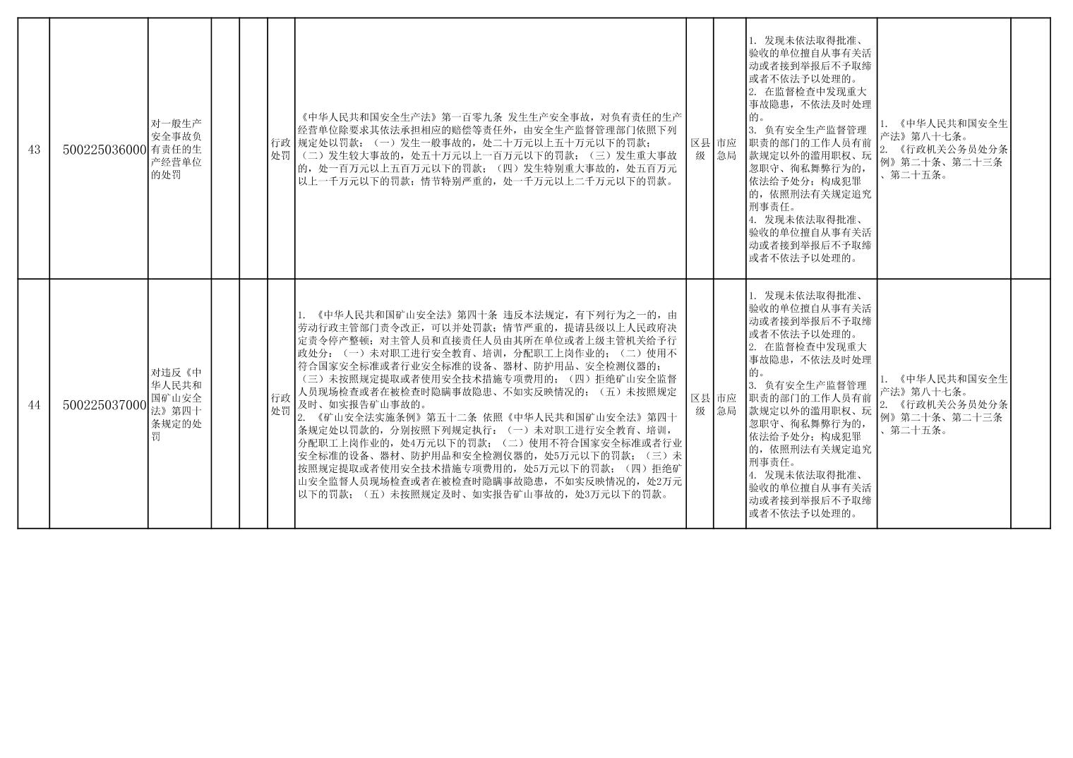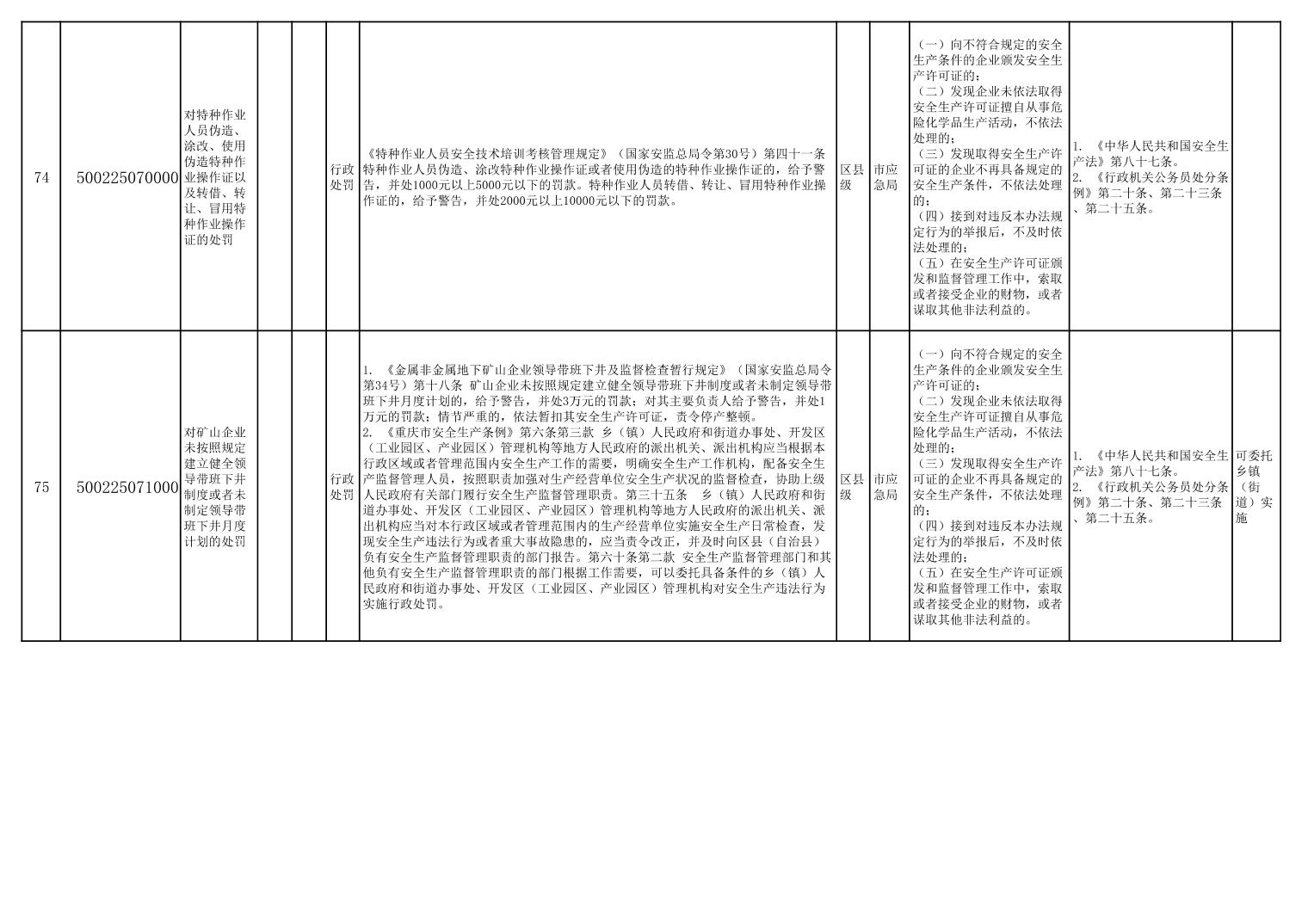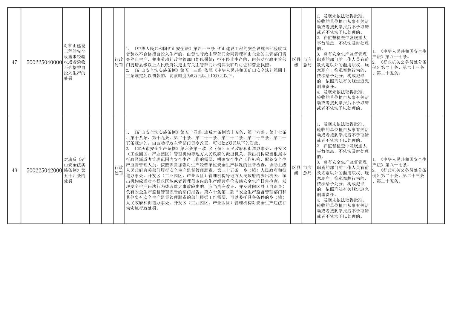 重庆市大渡口区应急管理局2025年度行政权力和责任事项清单