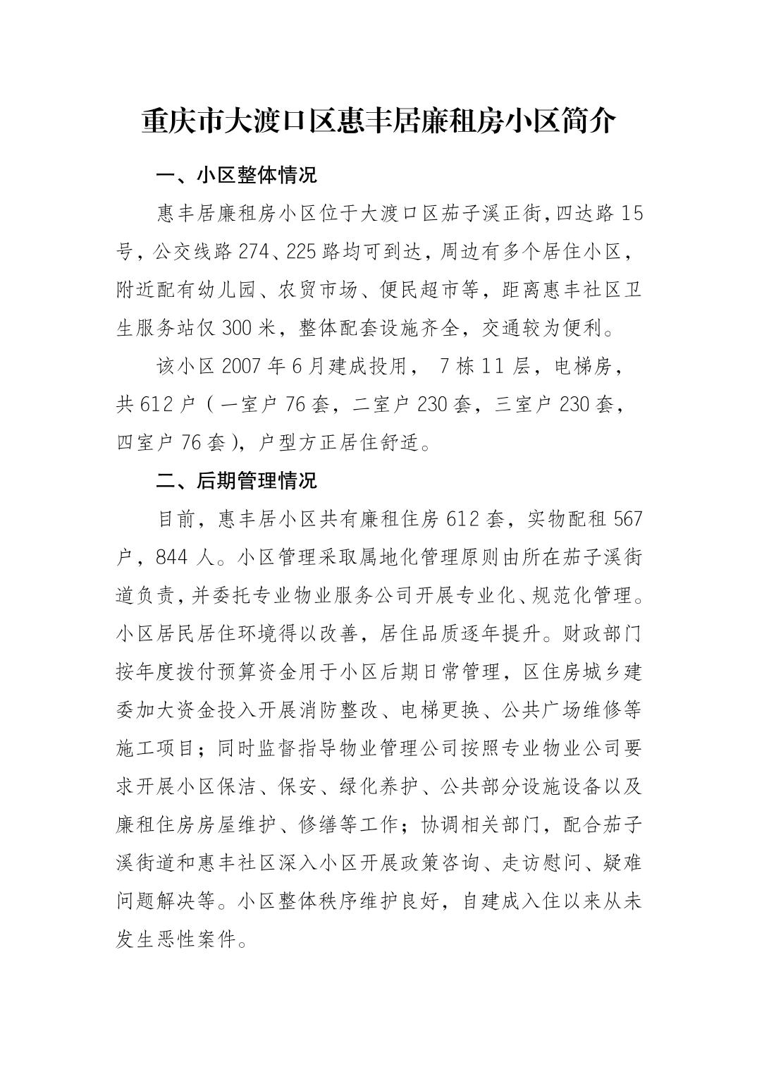 惠丰居廉租房小区简介