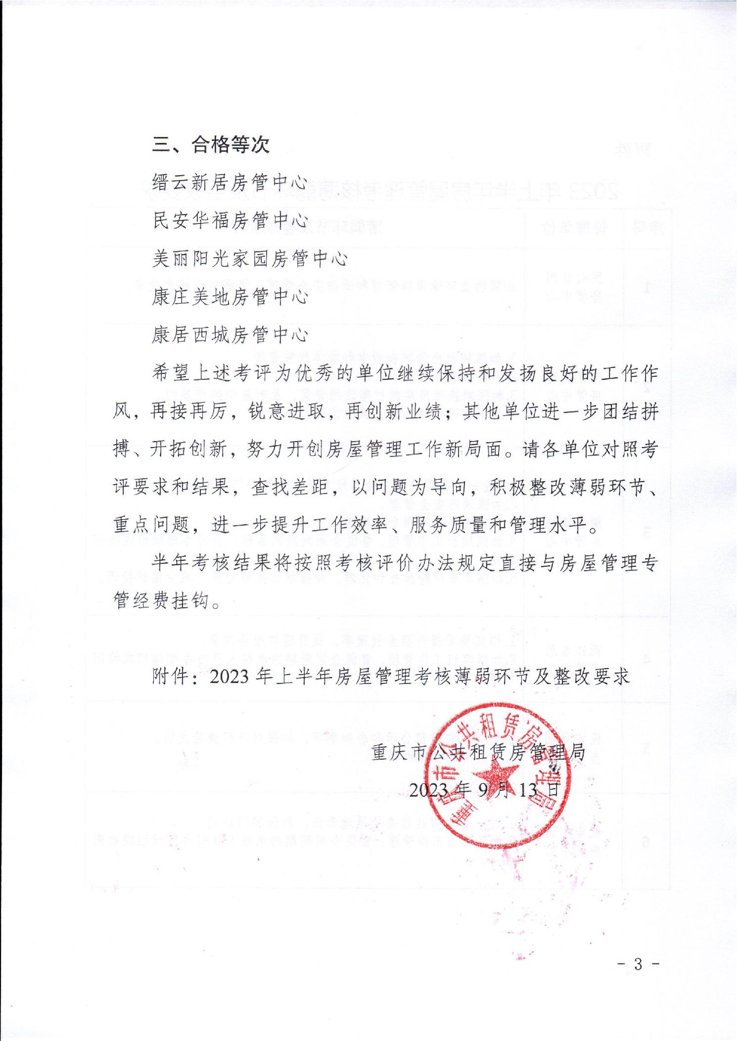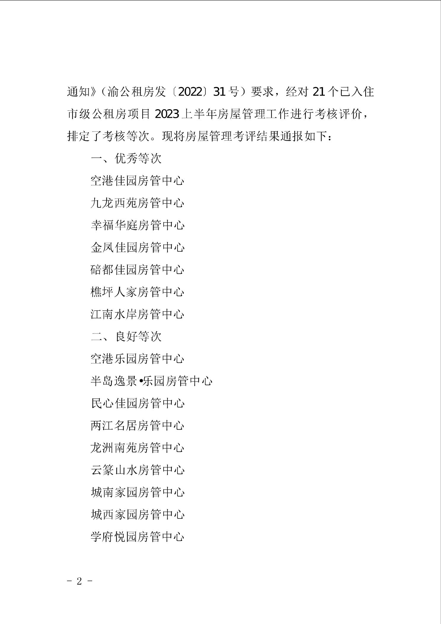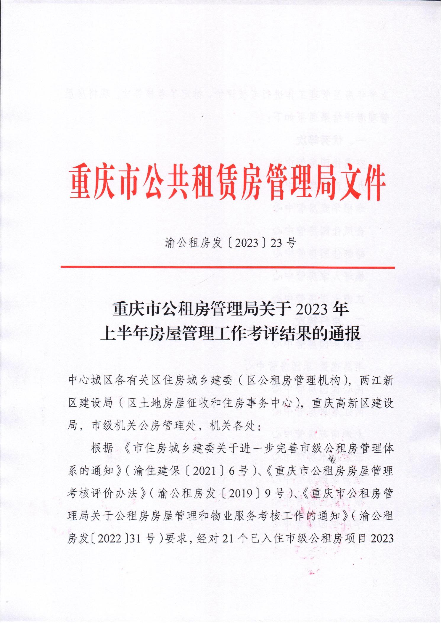 重庆市公租房管理局关于2023年上半年房屋管理工作考评结果的通报