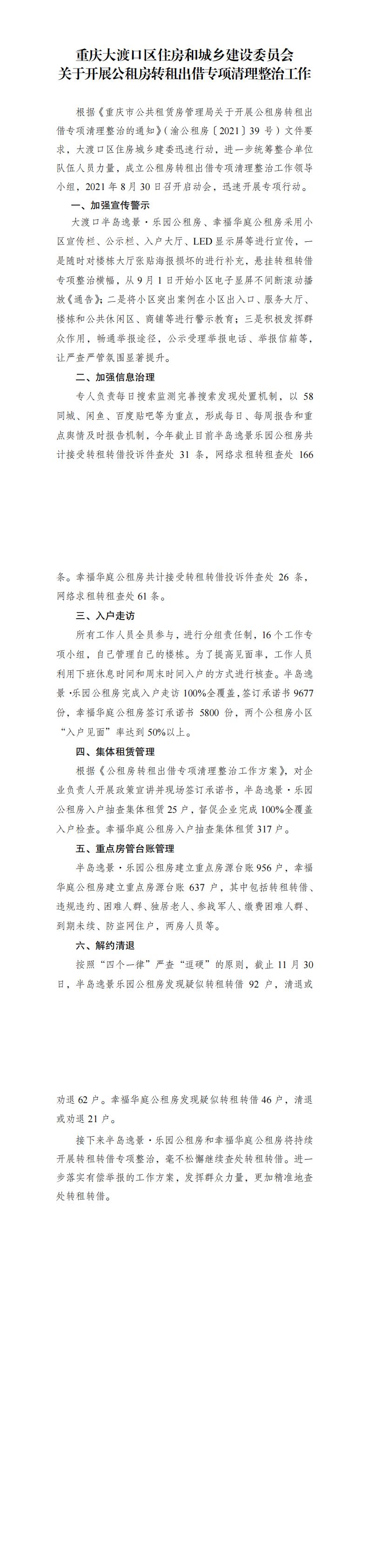 重庆市大渡口区住房和城乡建设委员会关于开展公租房转租出借专项清理整治工作.pdf