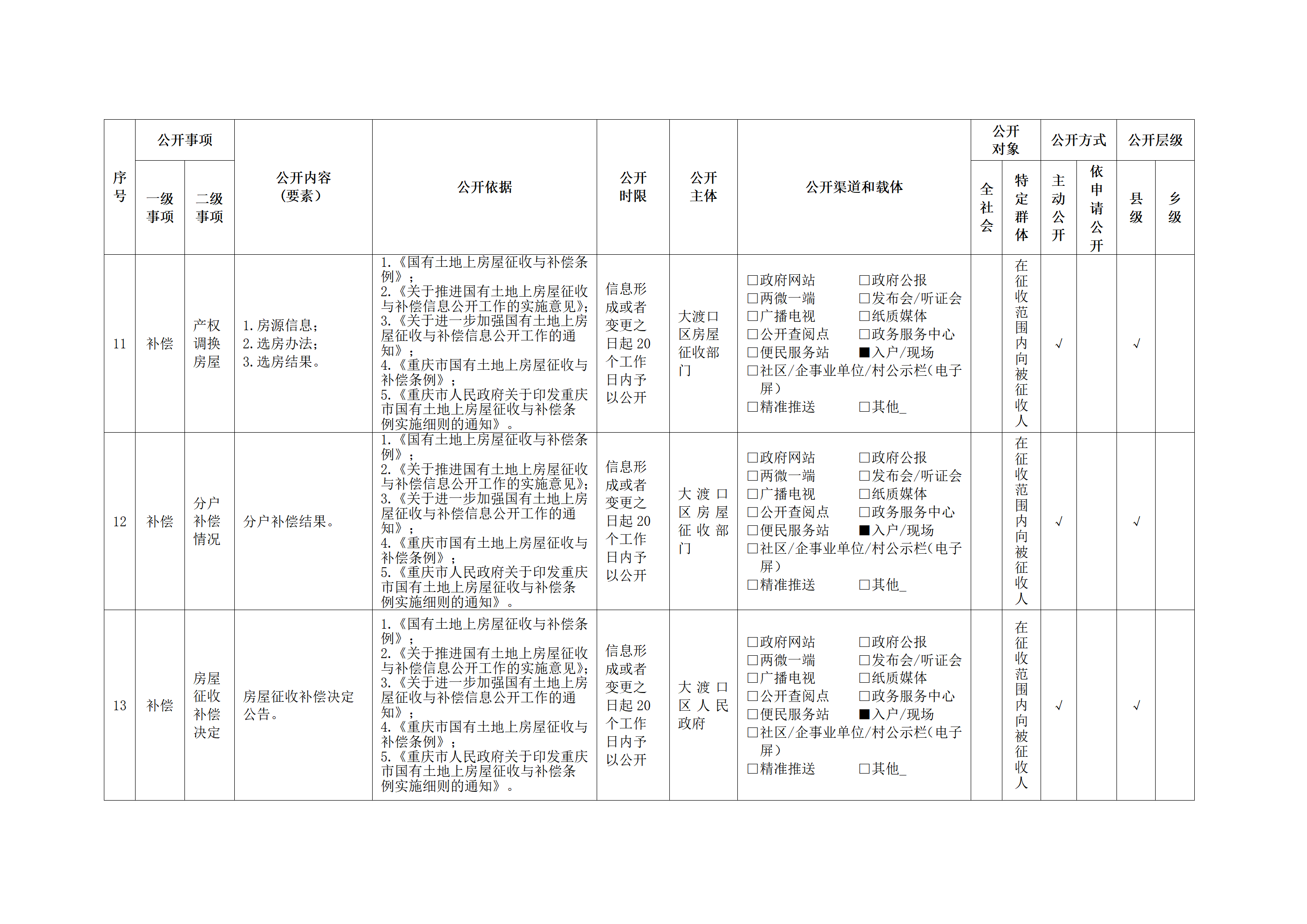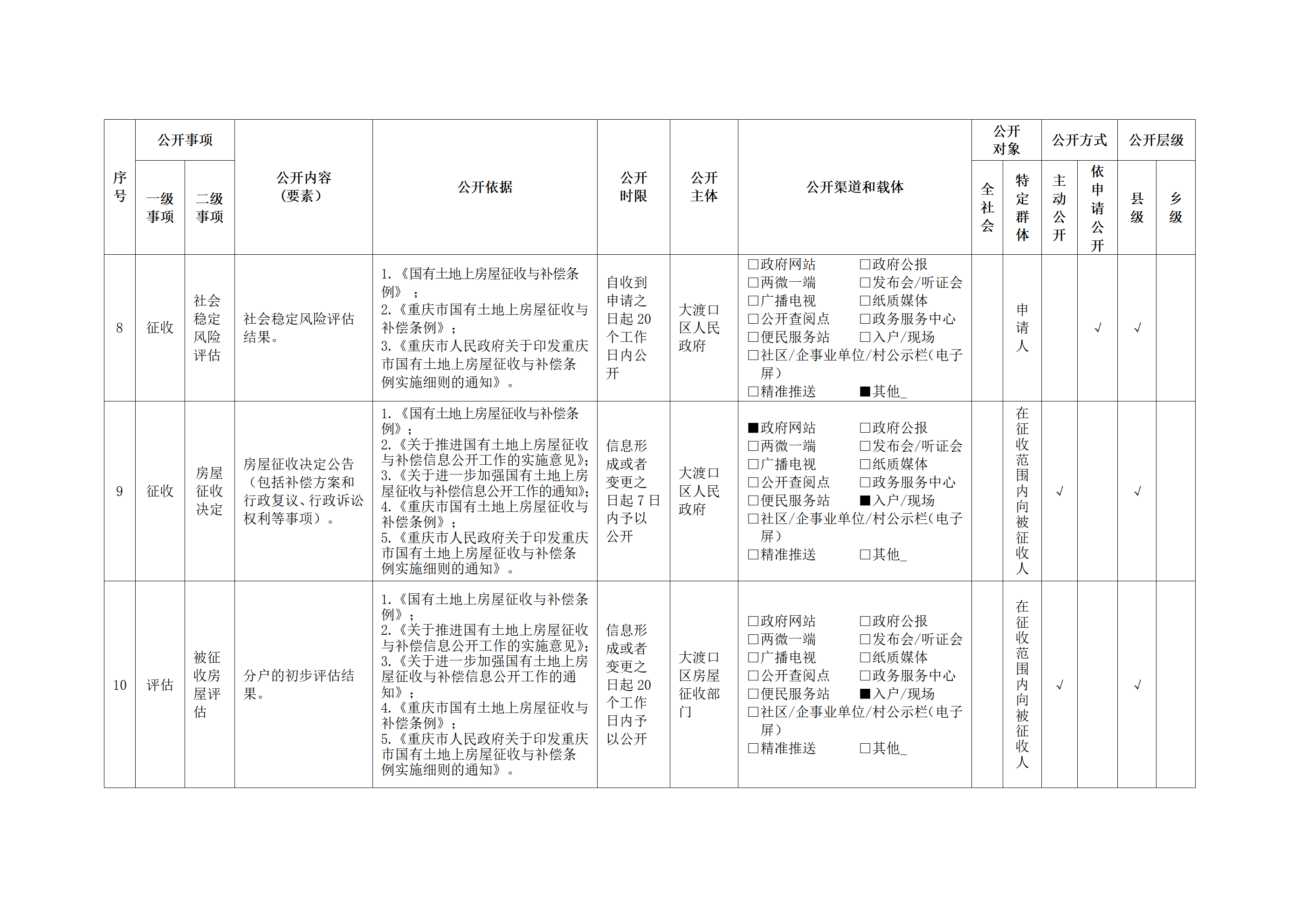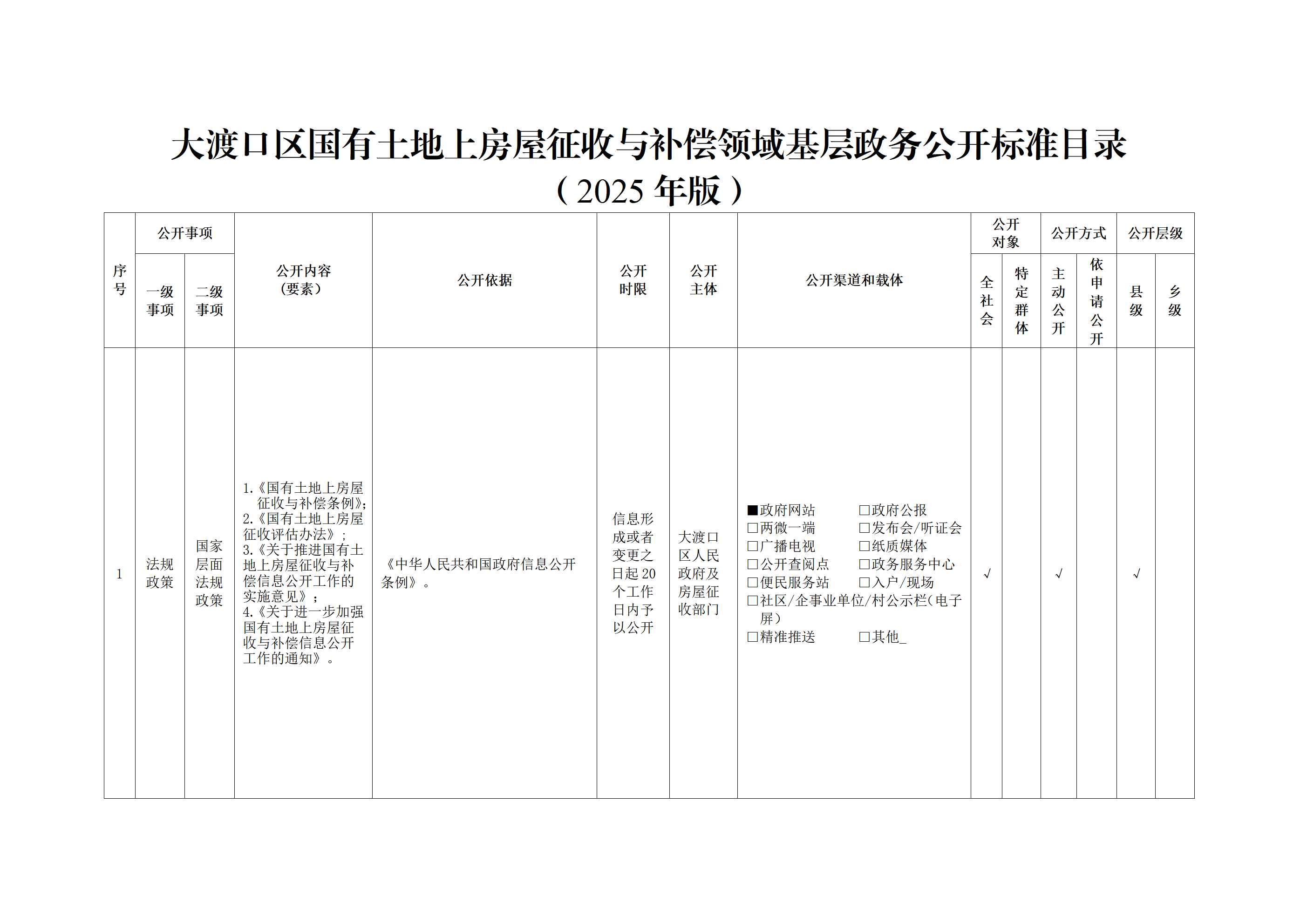大渡口区国有土地上房屋征收与补偿领域政务公开标准目录(2025年版)