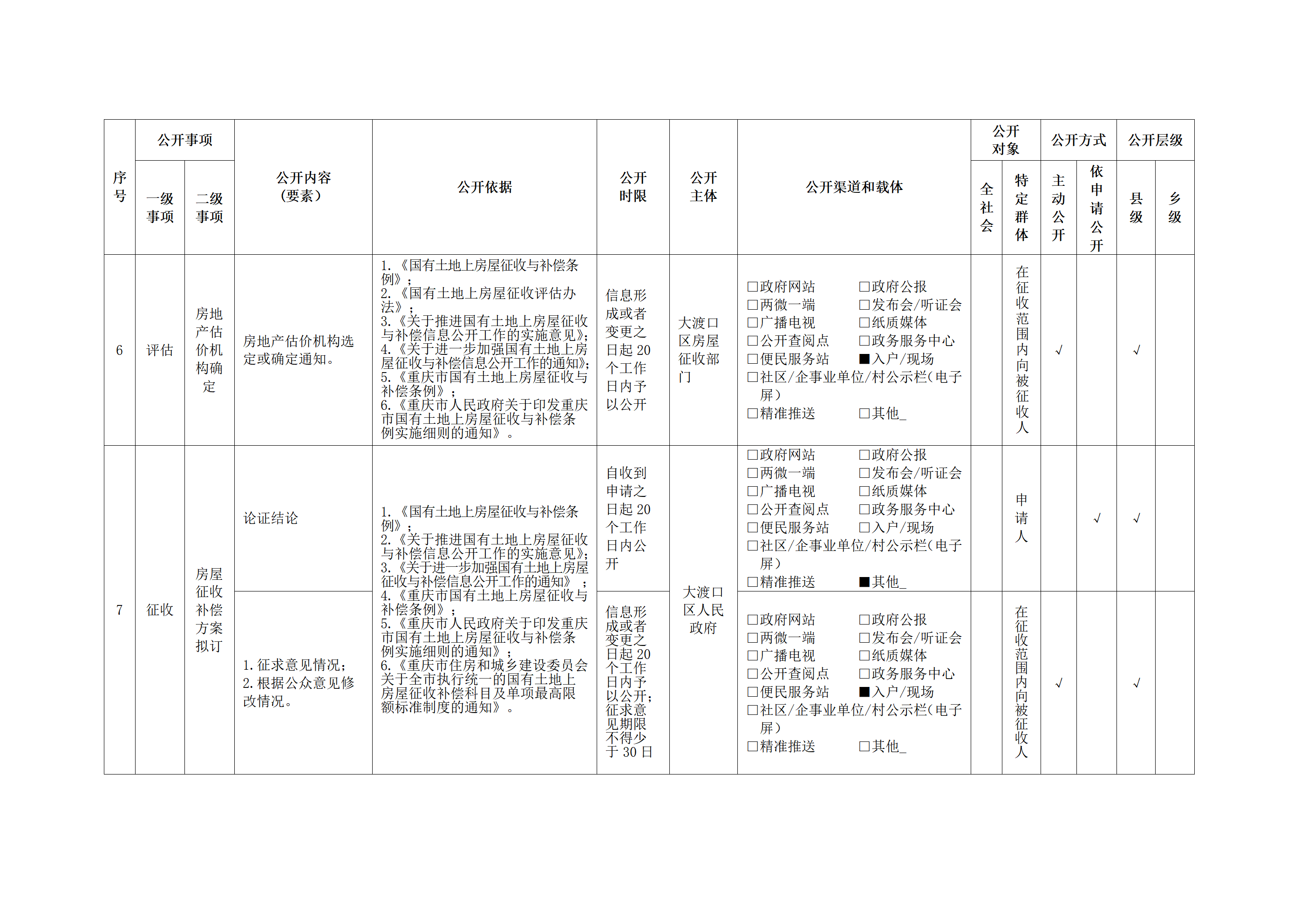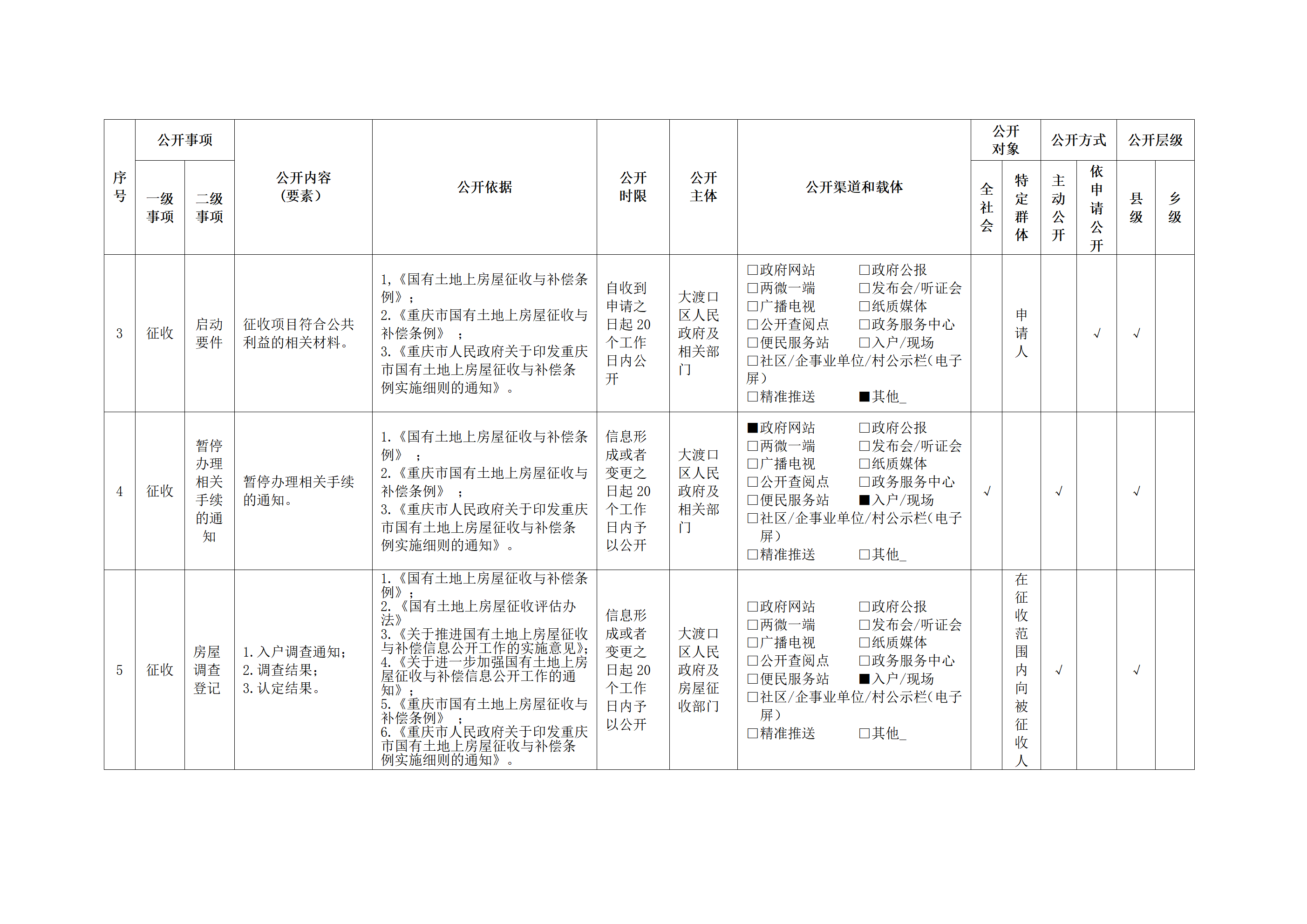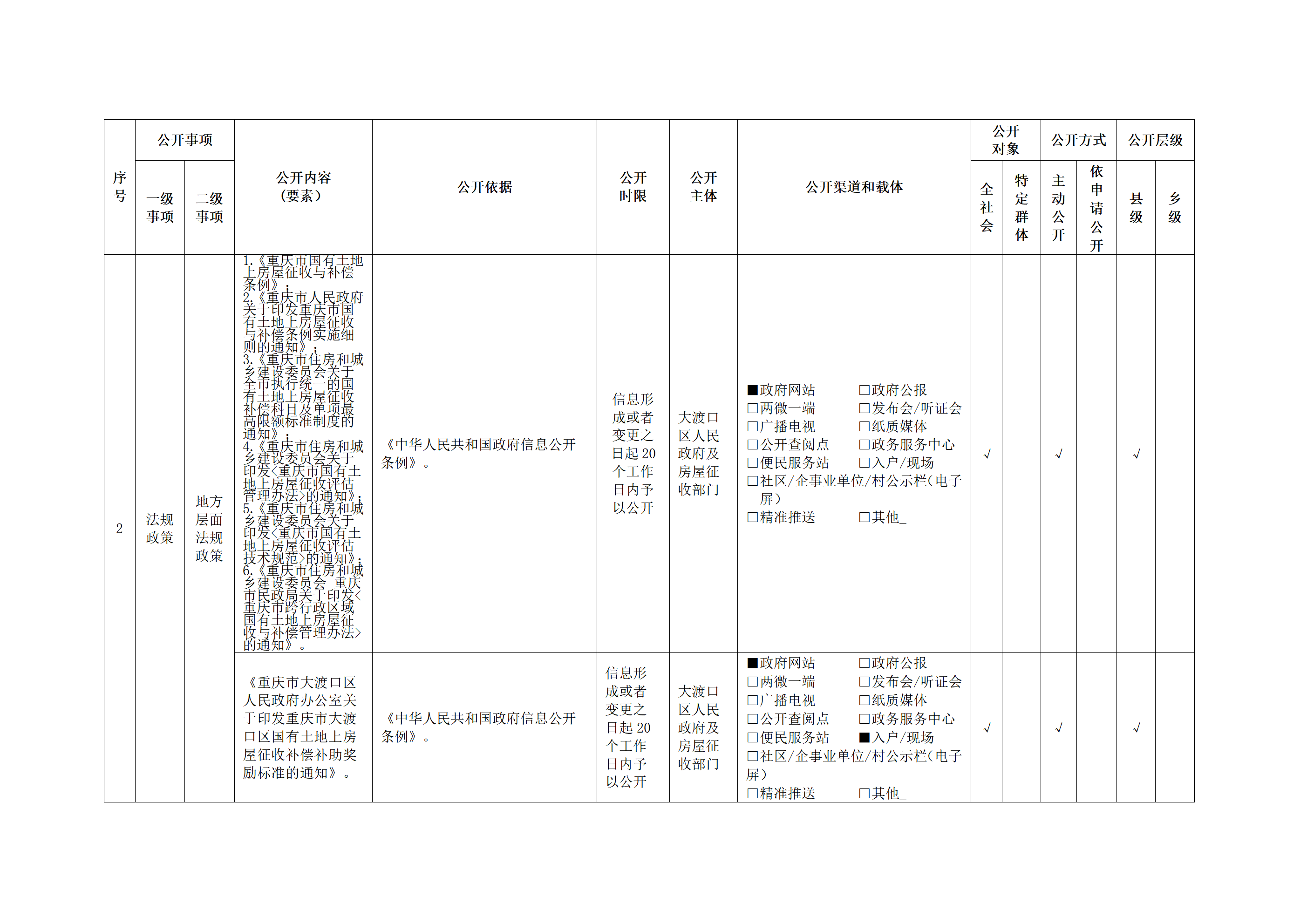 大渡口区国有土地上房屋征收与补偿领域政务公开标准目录(2025年版)