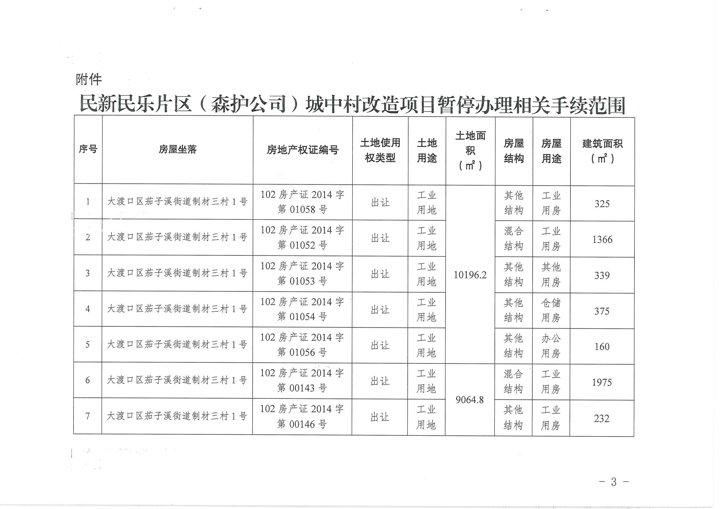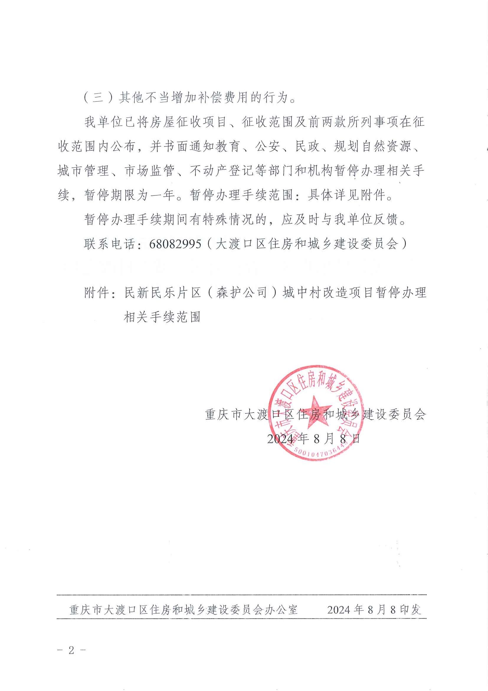 关于民新民乐片区(森护公司)城中村改造项目暂停办理相关手续的通知