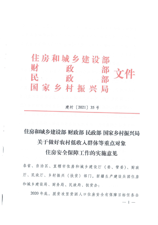 关于做好农村低收入群体等重点对象住房安全保障工作的通知