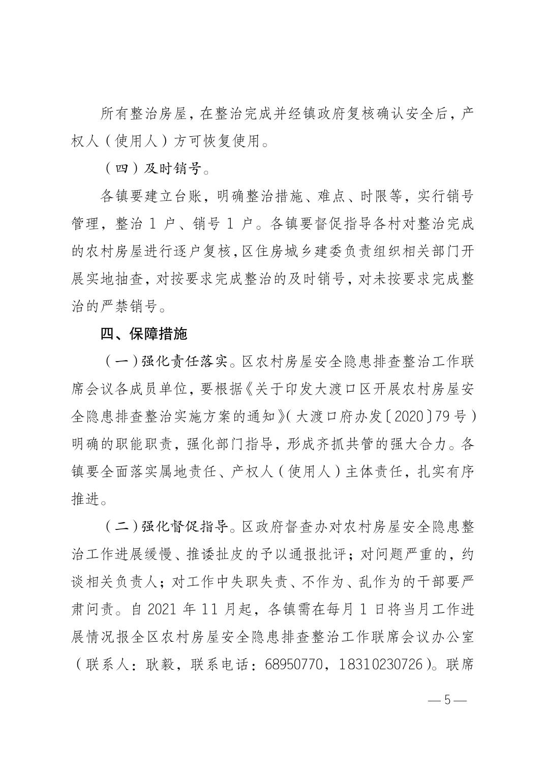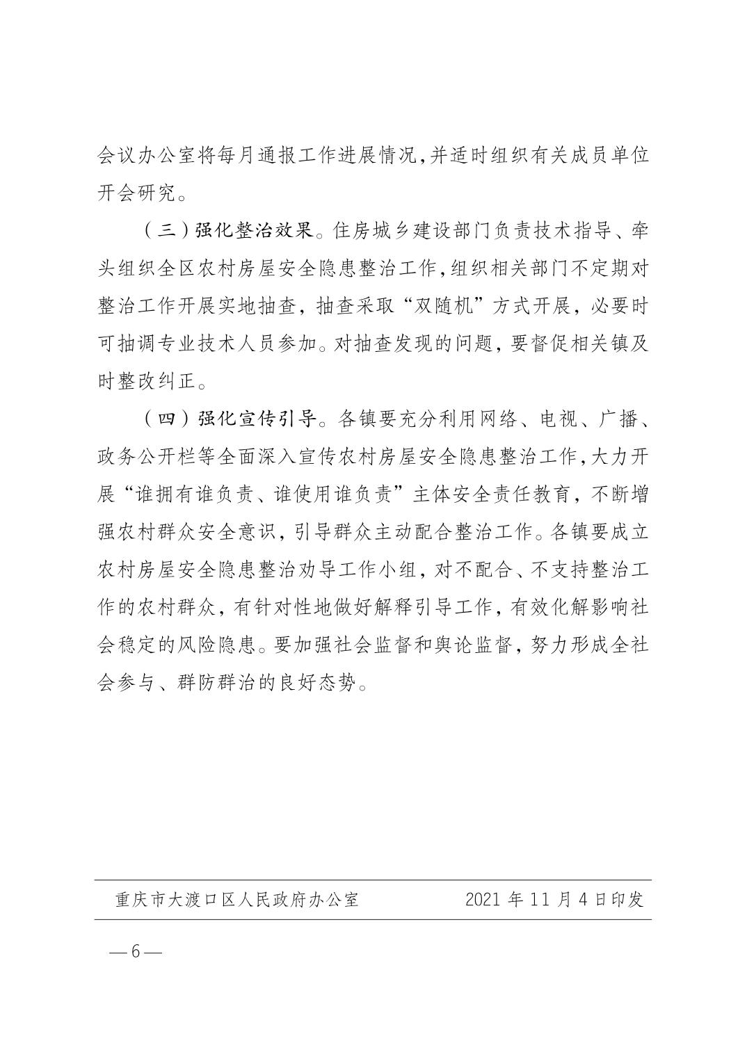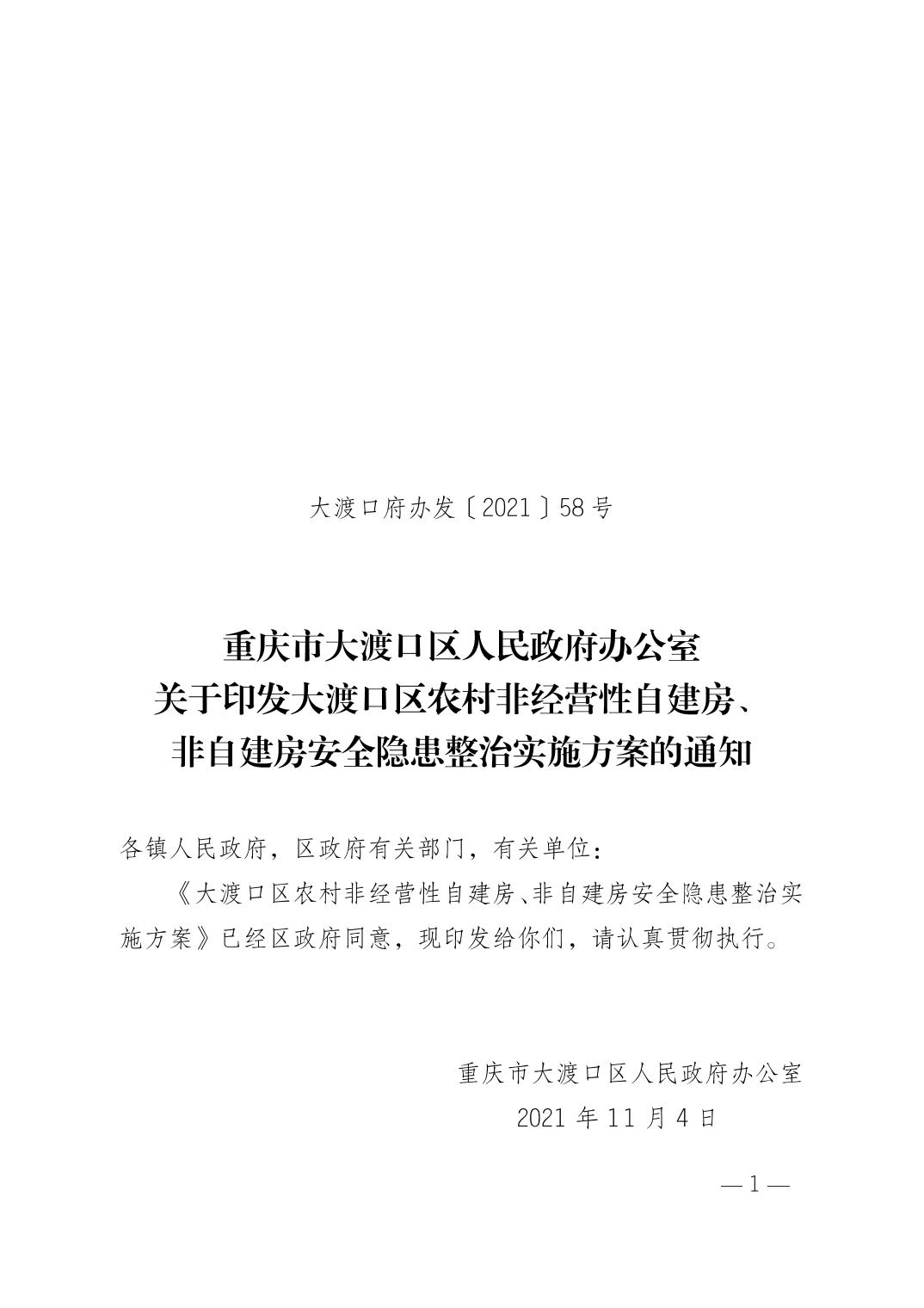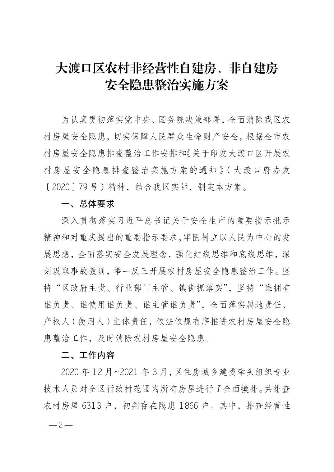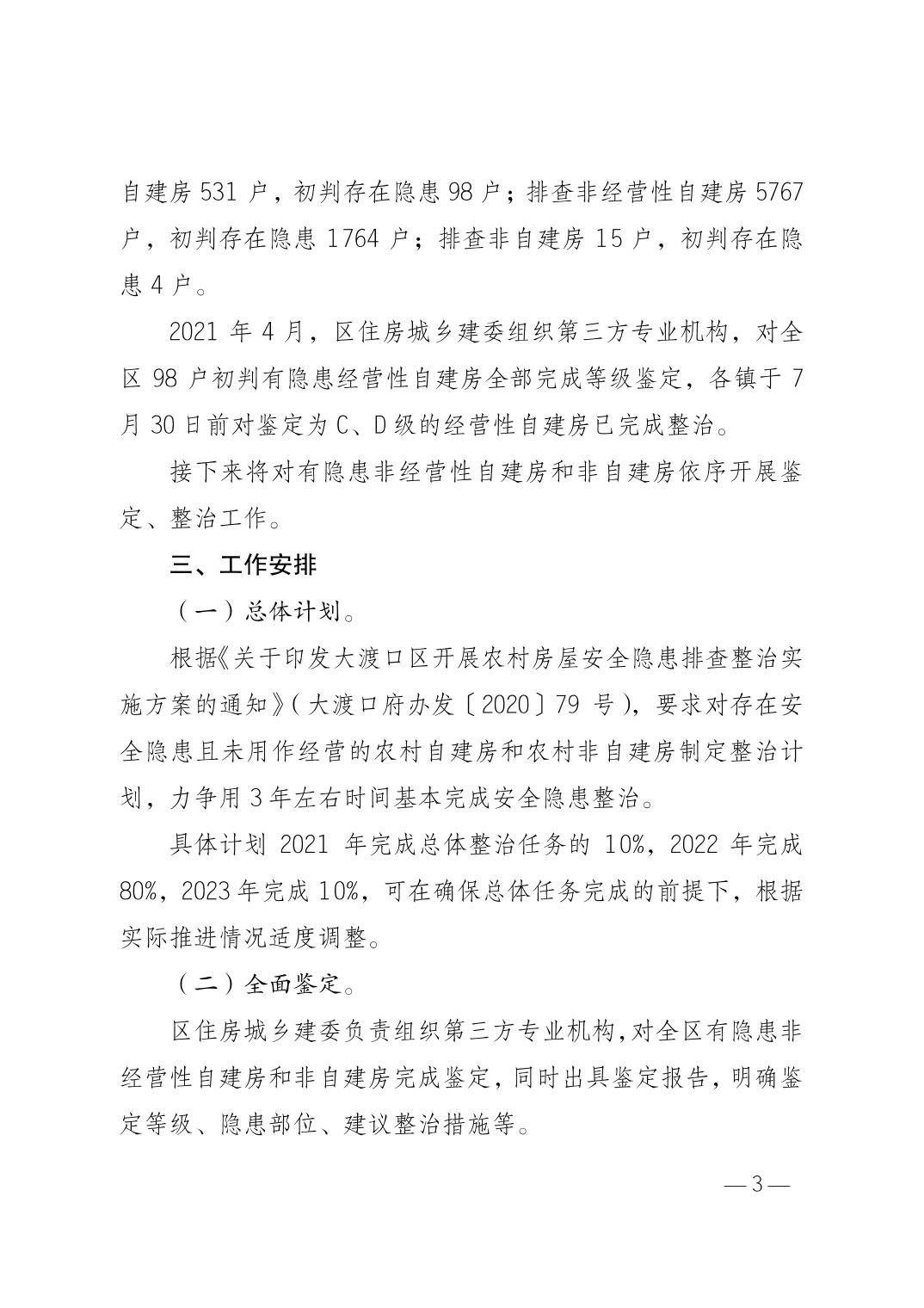 重庆市大渡口区人民政府办公室关于印发大渡口区农村非经营性自建房、非自建房安全隐患整治实施方案的通知