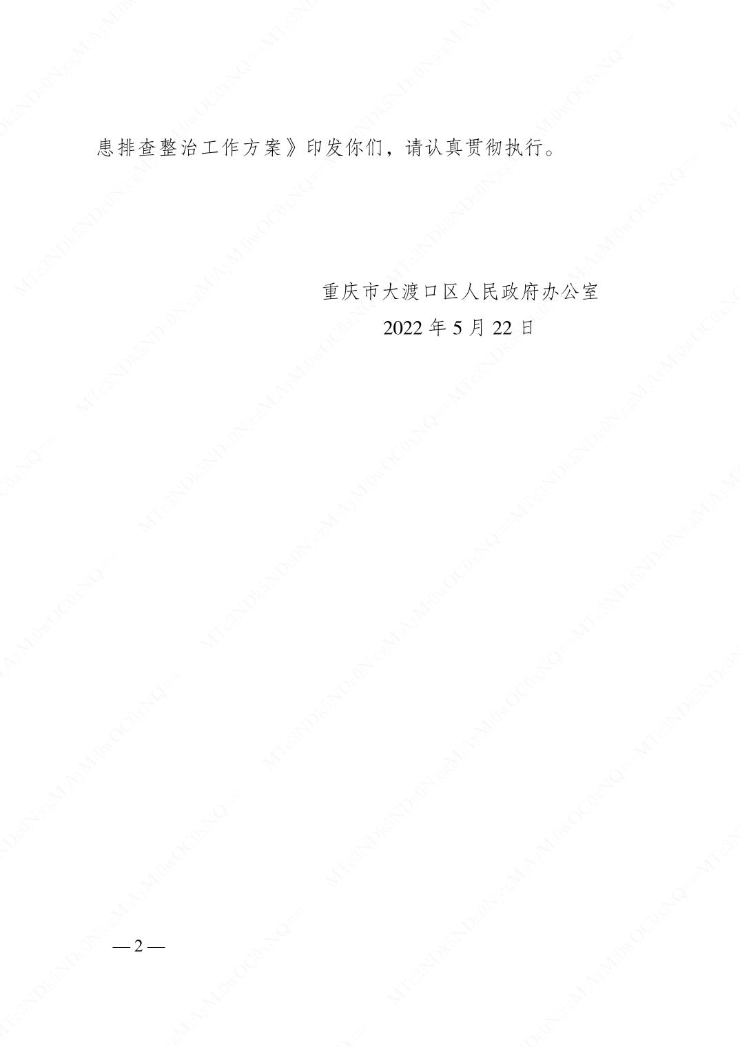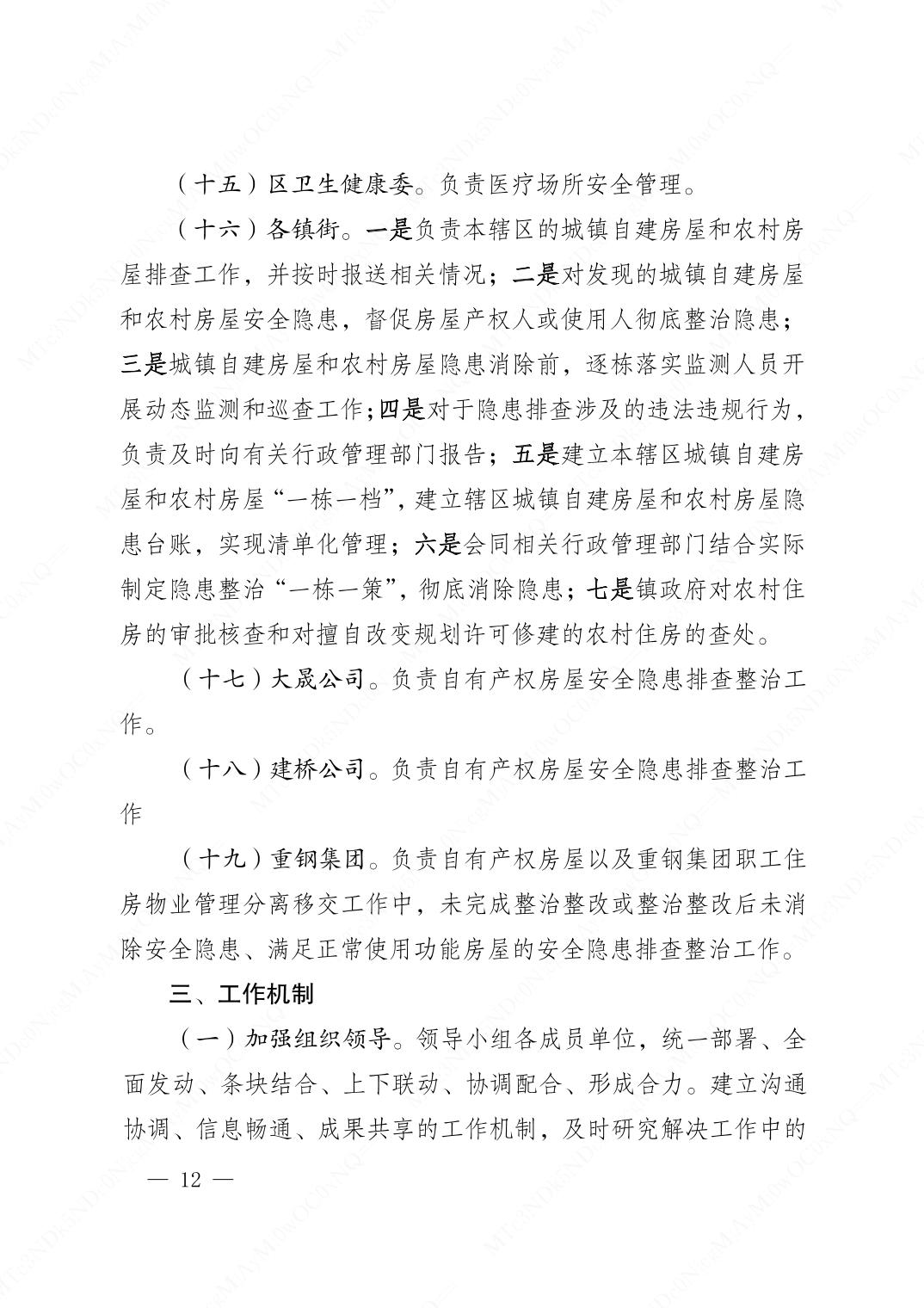 重庆市大渡口区人民政府办公室关于印发大渡口区城镇自建房和农村房屋安全隐患排查整治工作方案的通知.pdf