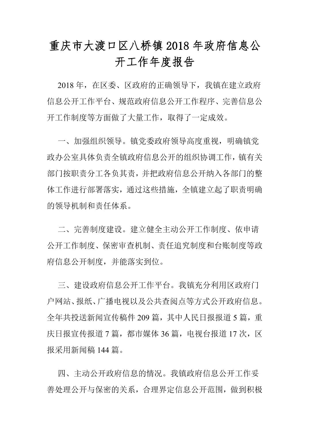 重庆市大渡口区八桥镇2018年政府信息公开工作年度报告.pdf