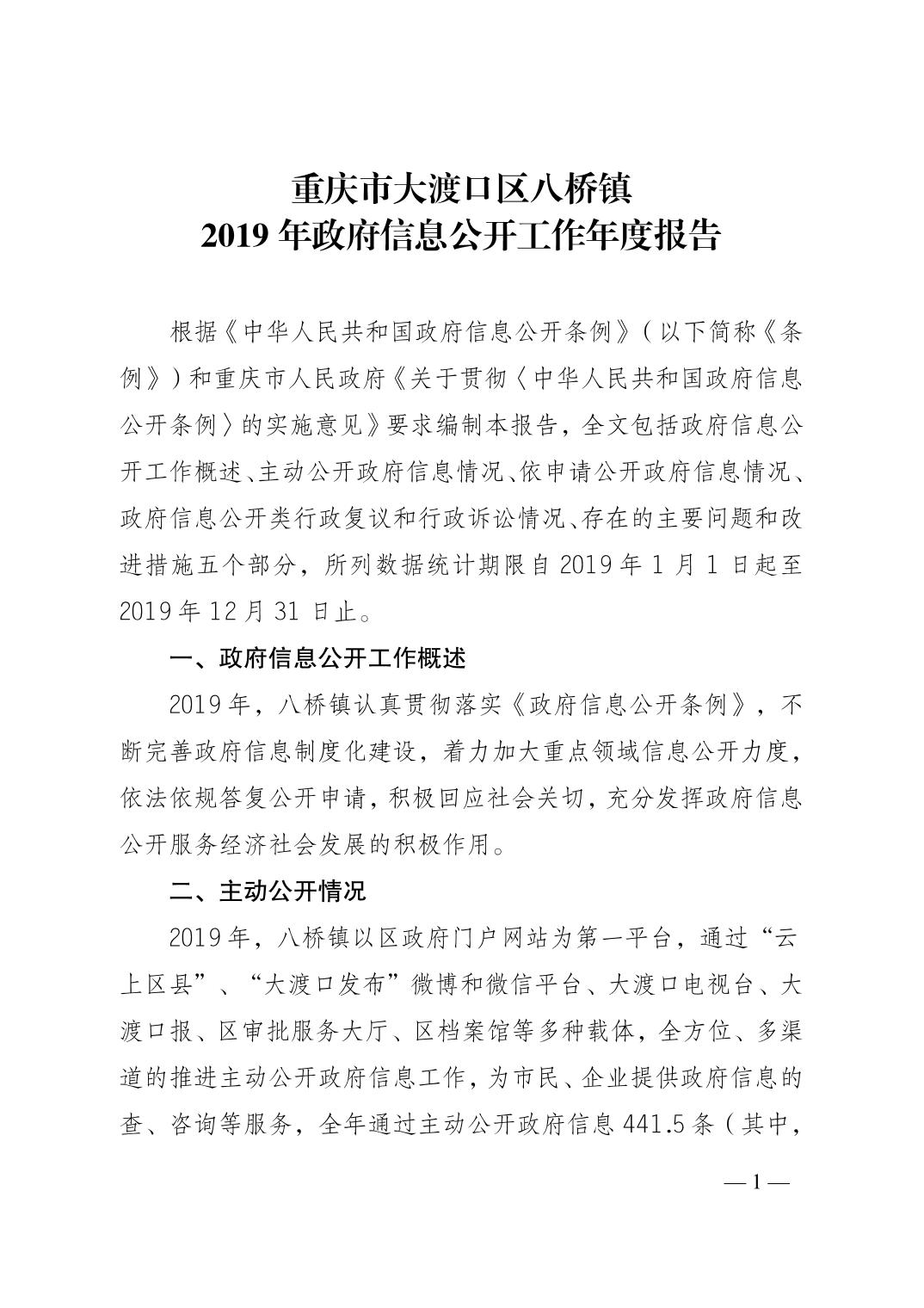 重庆市大渡口区八桥镇2019年政府信息公开工作年度报告.pdf