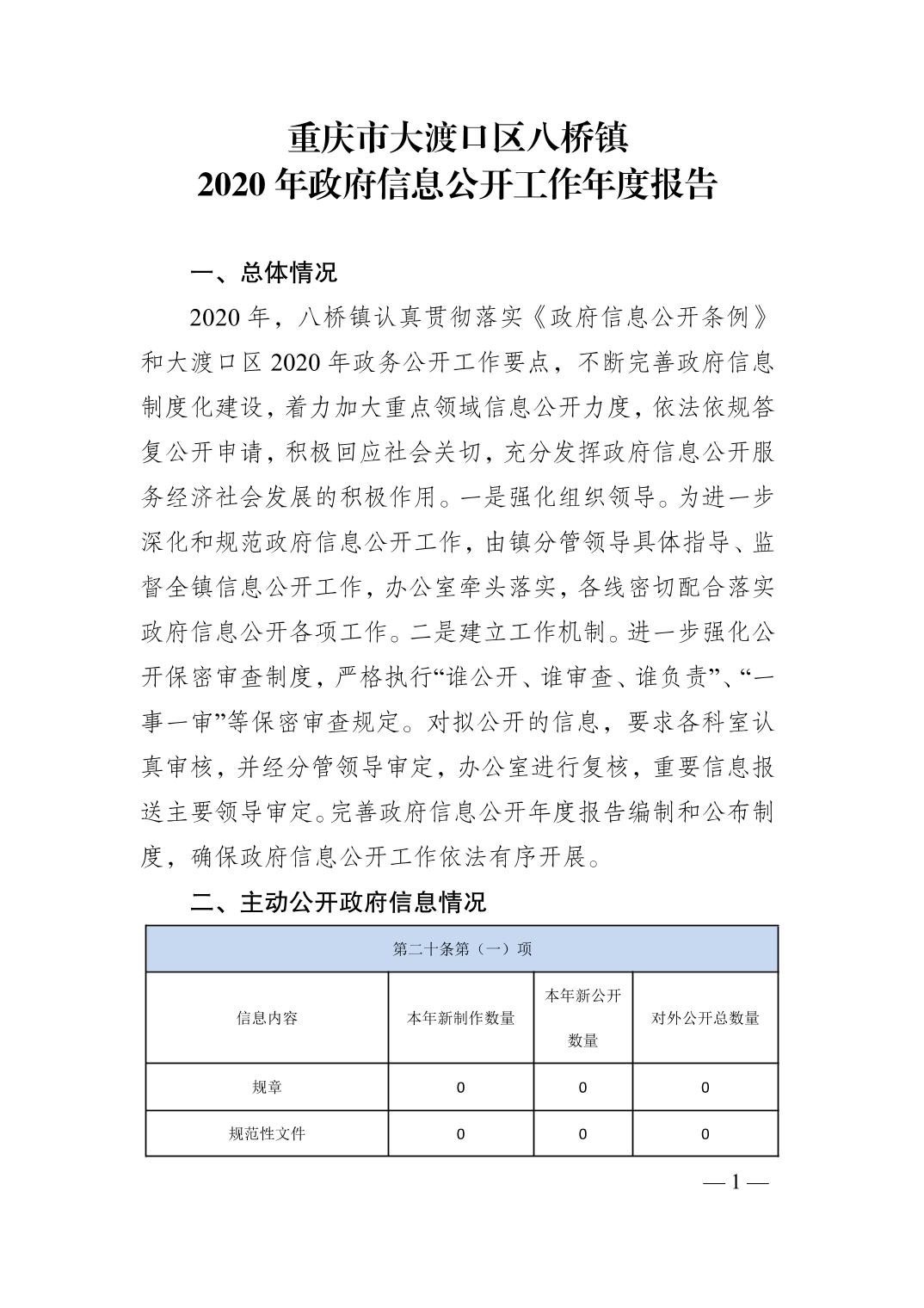 重庆市大渡口区八桥镇 2020年政府信息公开工作年度报告.pdf