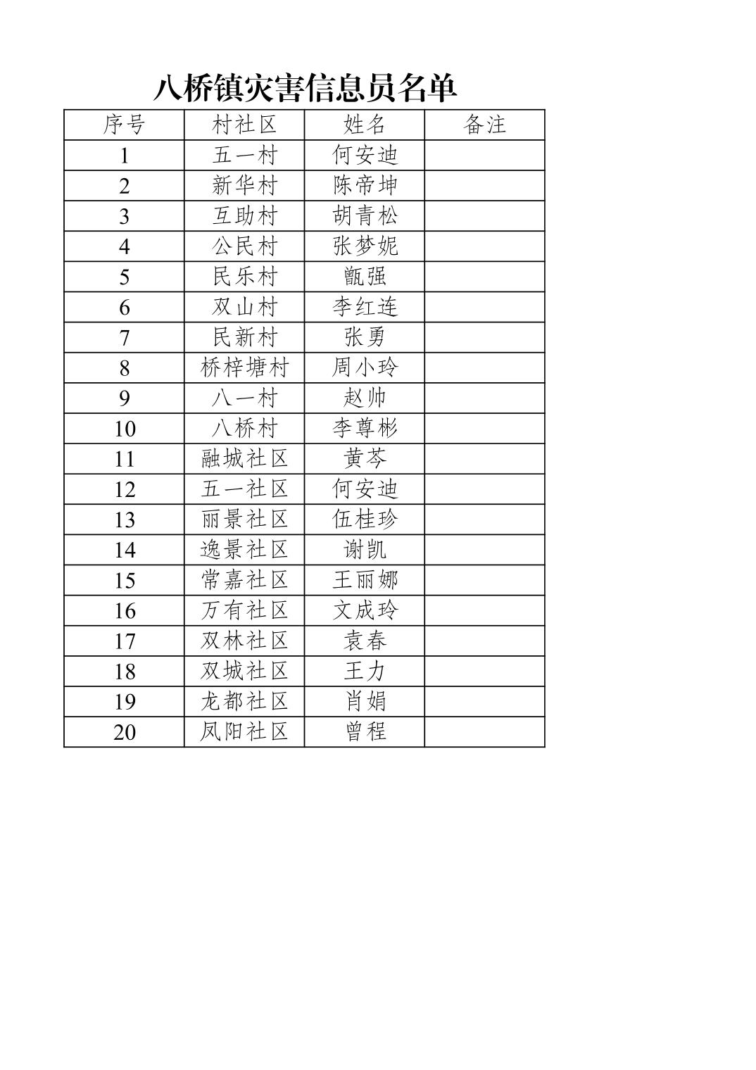 八桥镇灾害信息员名单