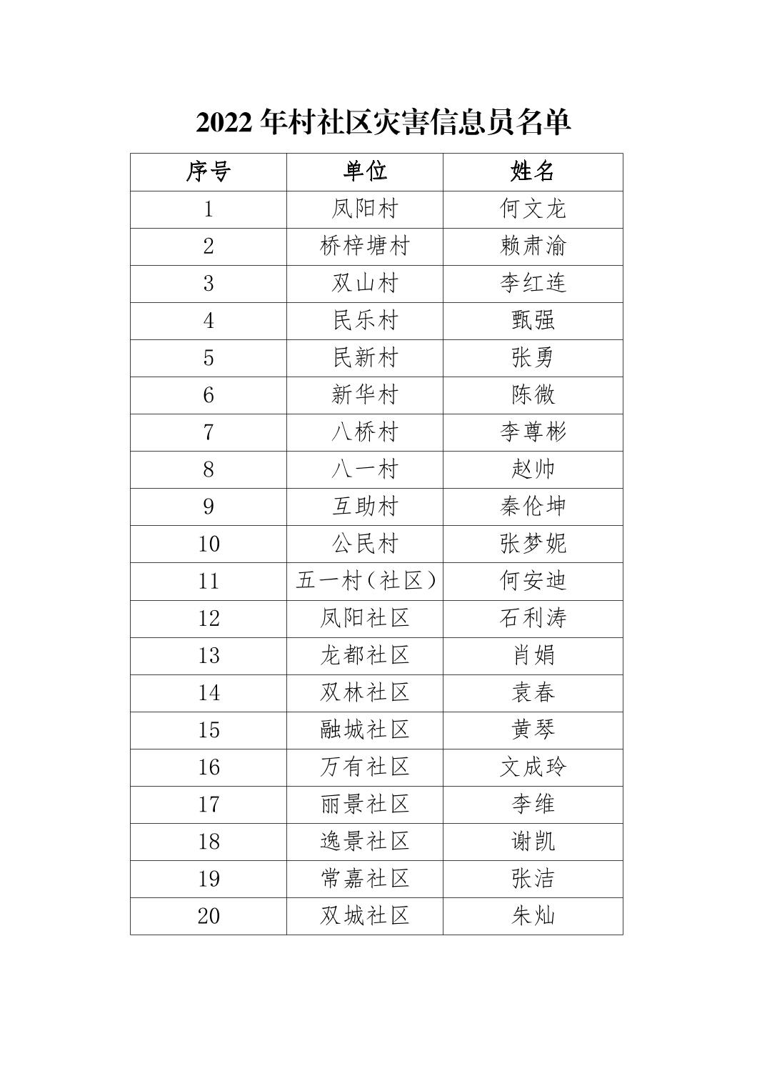 村社区灾害信息员名单(2022年6月)