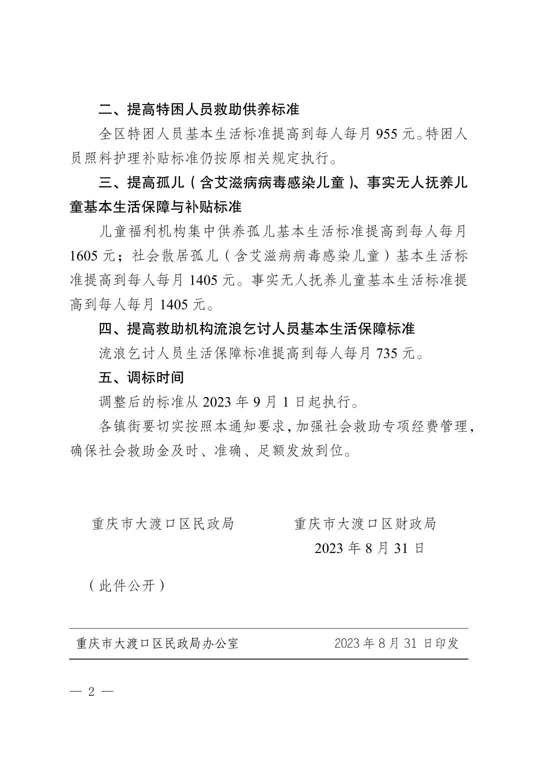 重庆市大渡口区民政局 财政局关于提高城乡低保等社会救助保障标准的通知