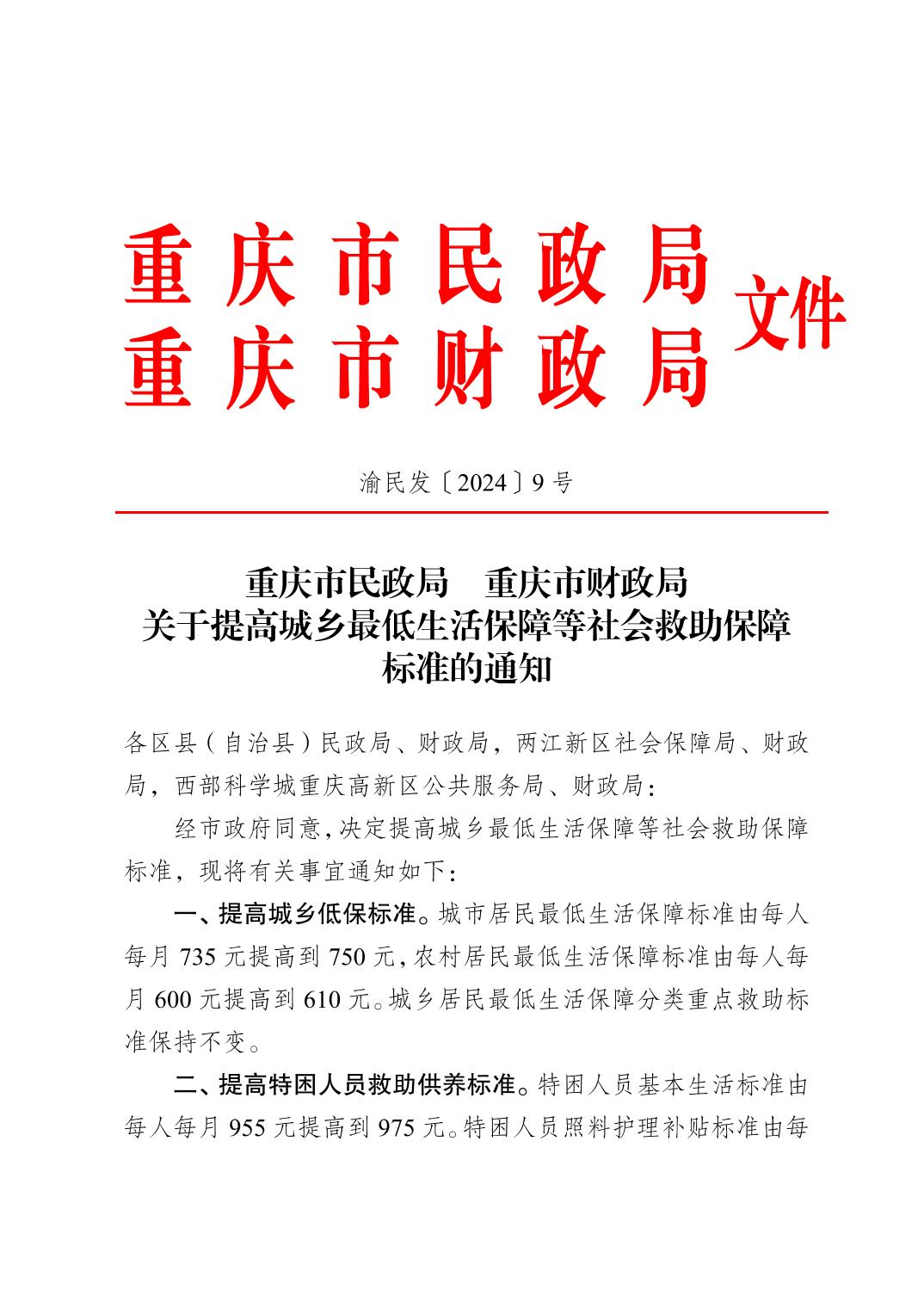 渝民发〔2024〕9号2024年提高城乡低保等社会救助保障标准的通知.pdf