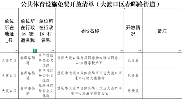 重庆市大渡口区春晖路街道办事处关于公共体育设施免费开放的通知