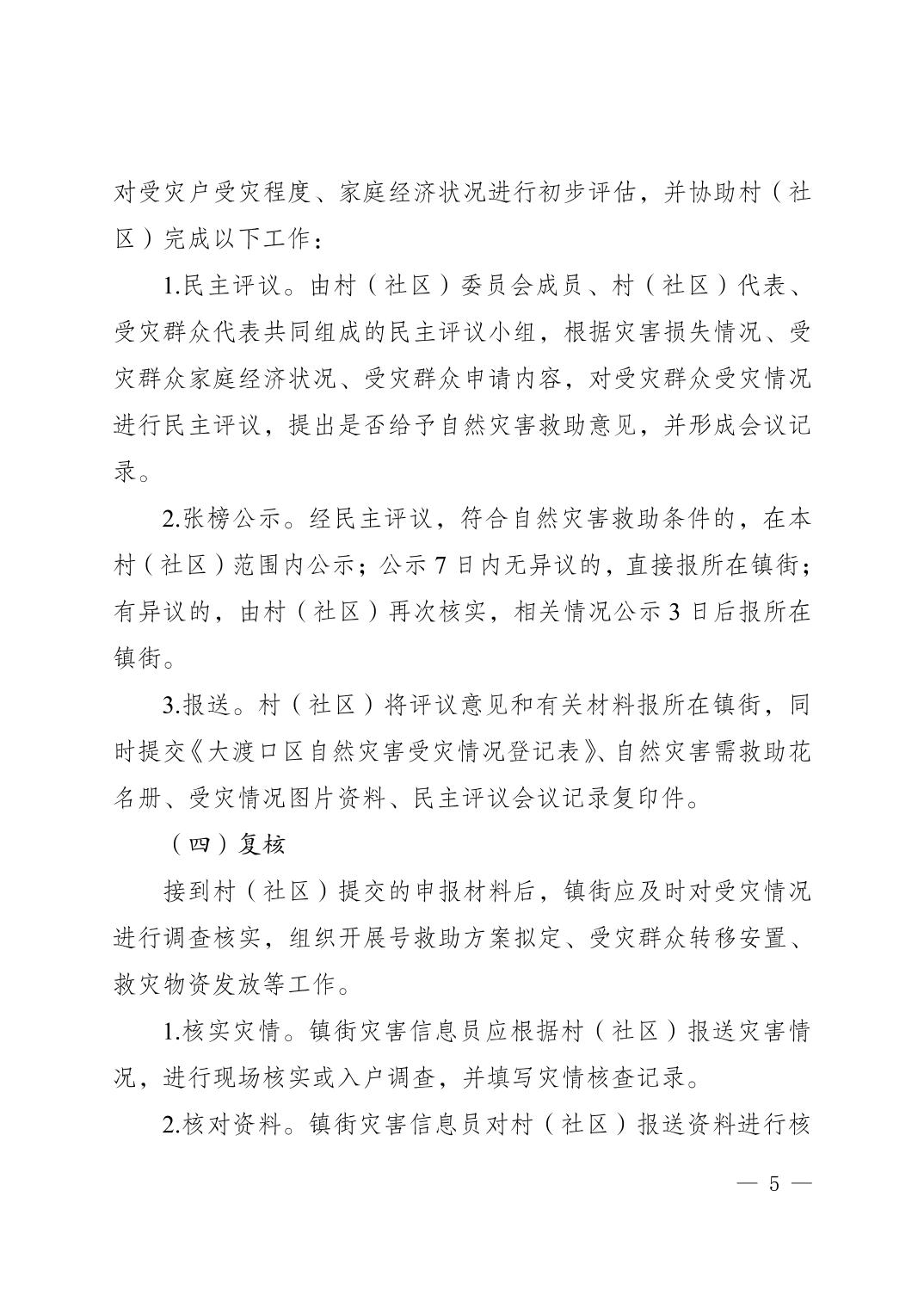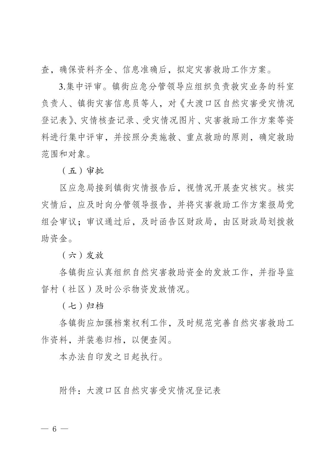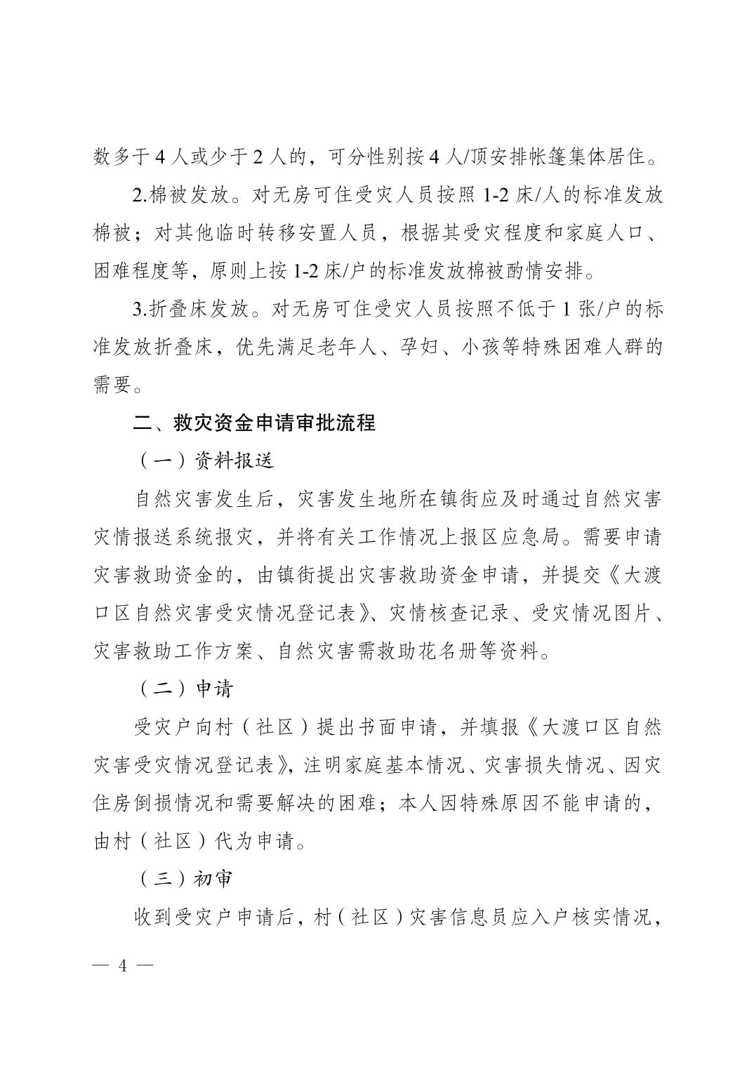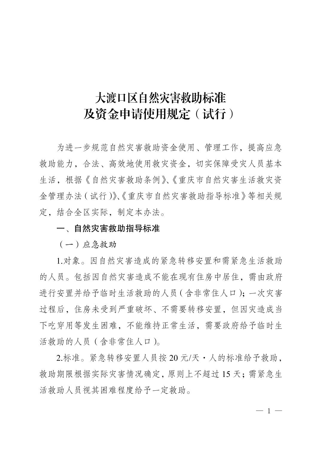大渡口区自然灾害救助标准及资金申请使用规定(试行)