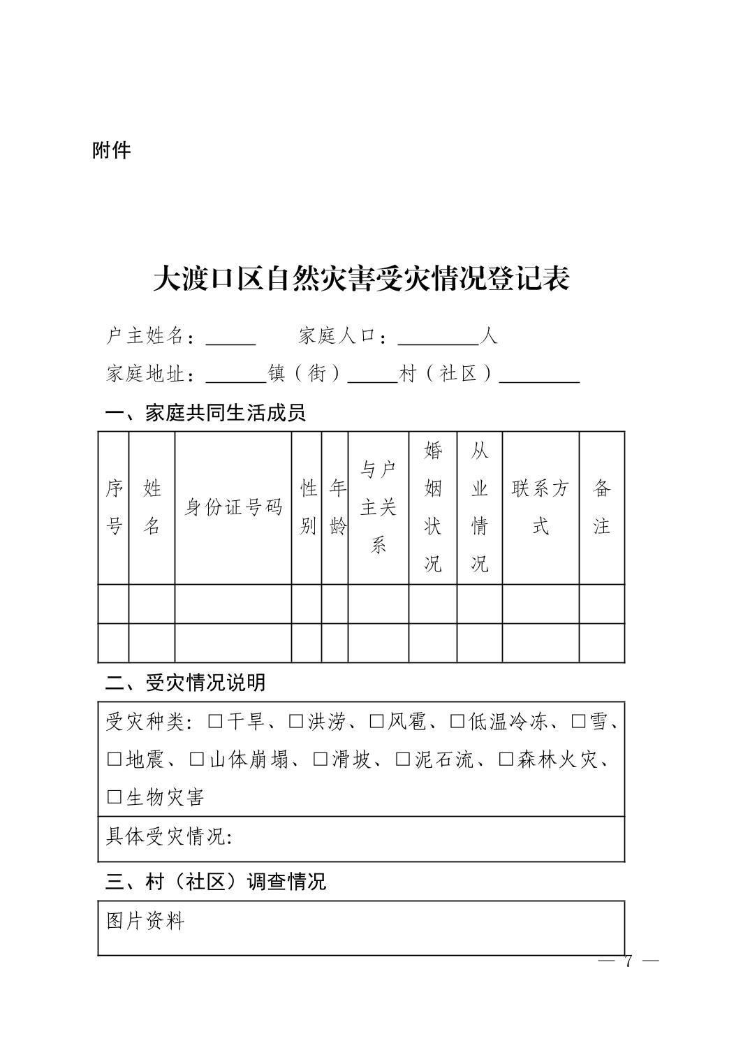 附件:大渡口区自然灾害受灾情况登记表.doc