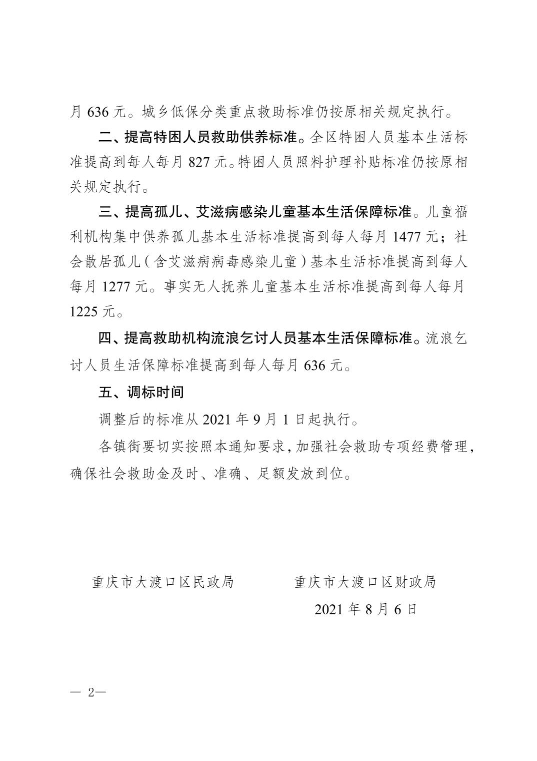 重庆市大渡口区关于2021年城乡低保等社会救助调标工作的通知(渡民发〔2021〕32号)