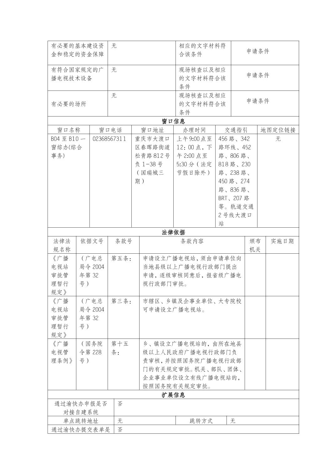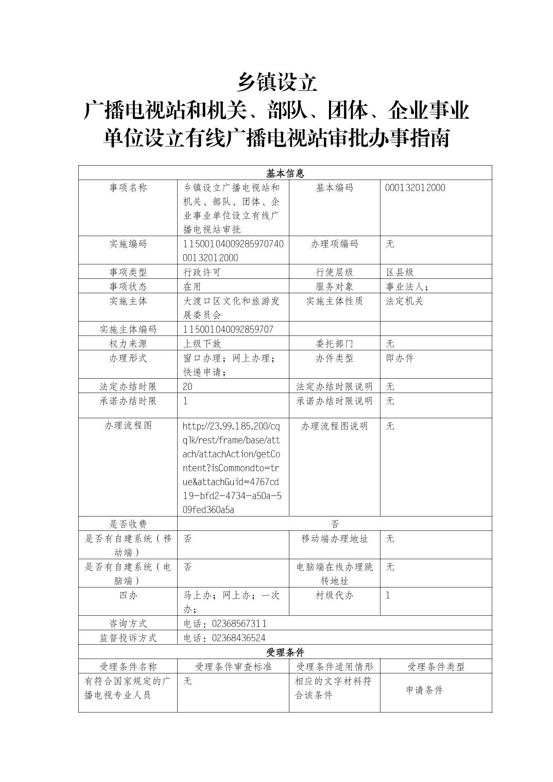 乡镇设立广播电视站和机关、部队、团体、企业事业单位设立有线广播电视站审批清单办事指南