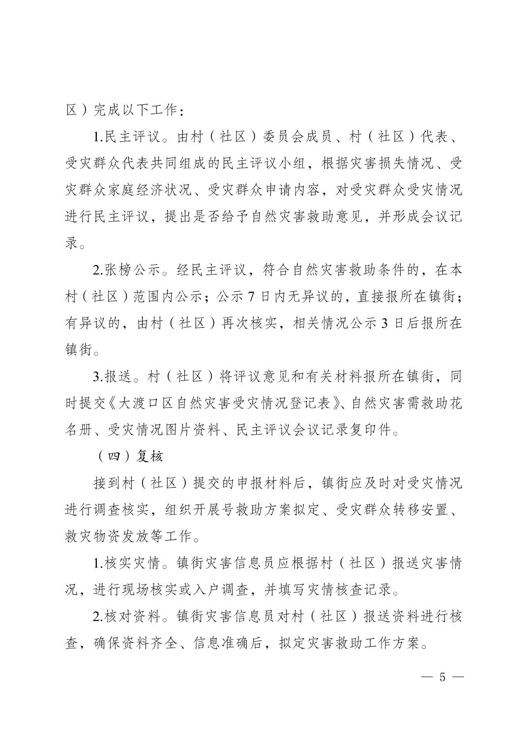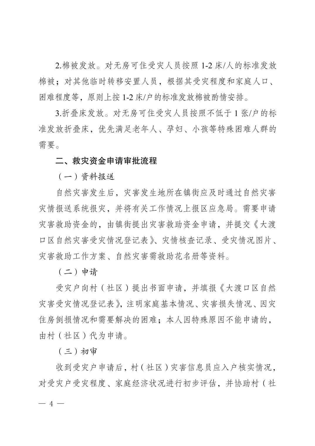 《大渡口区自然灾害救助标准及资金申请使用规定(试行)》