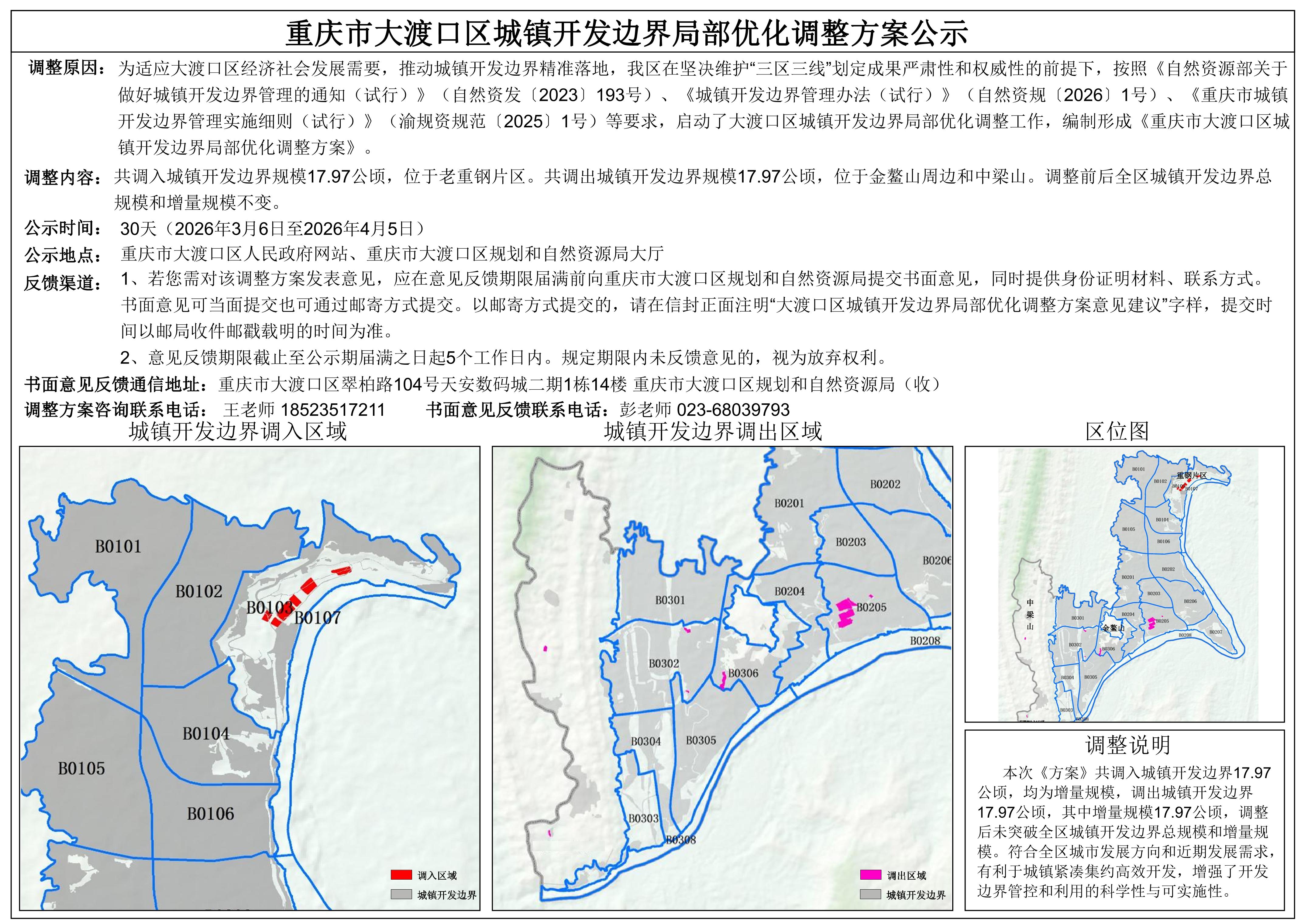 重庆市大渡口区城镇开发边界局部优化调整方案公示