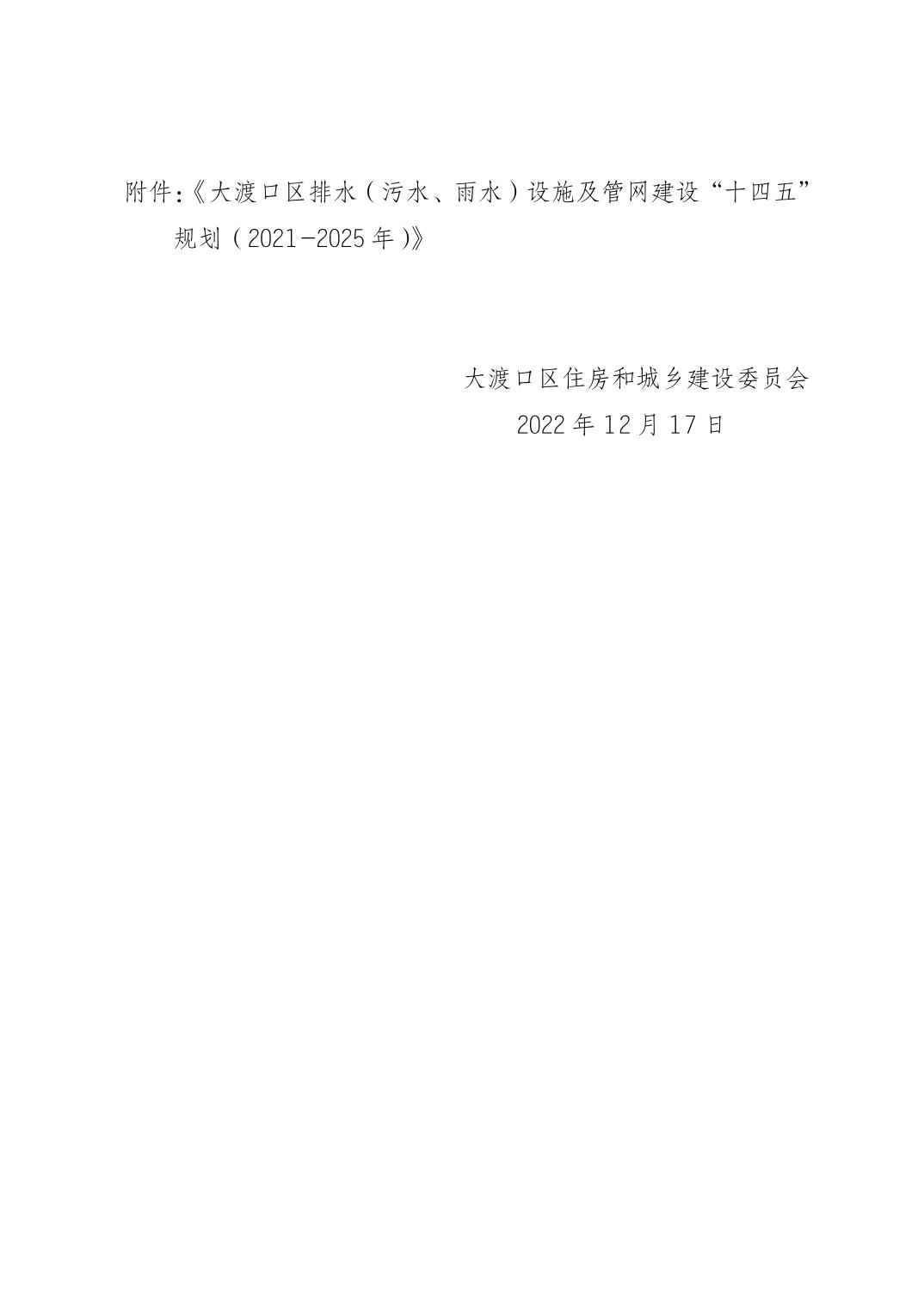大渡口区排水(污水、雨水)设施及管网建设“十四五”规划(2021-2025 年)(征求意见稿).pdf