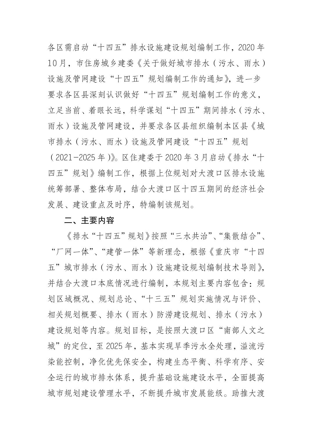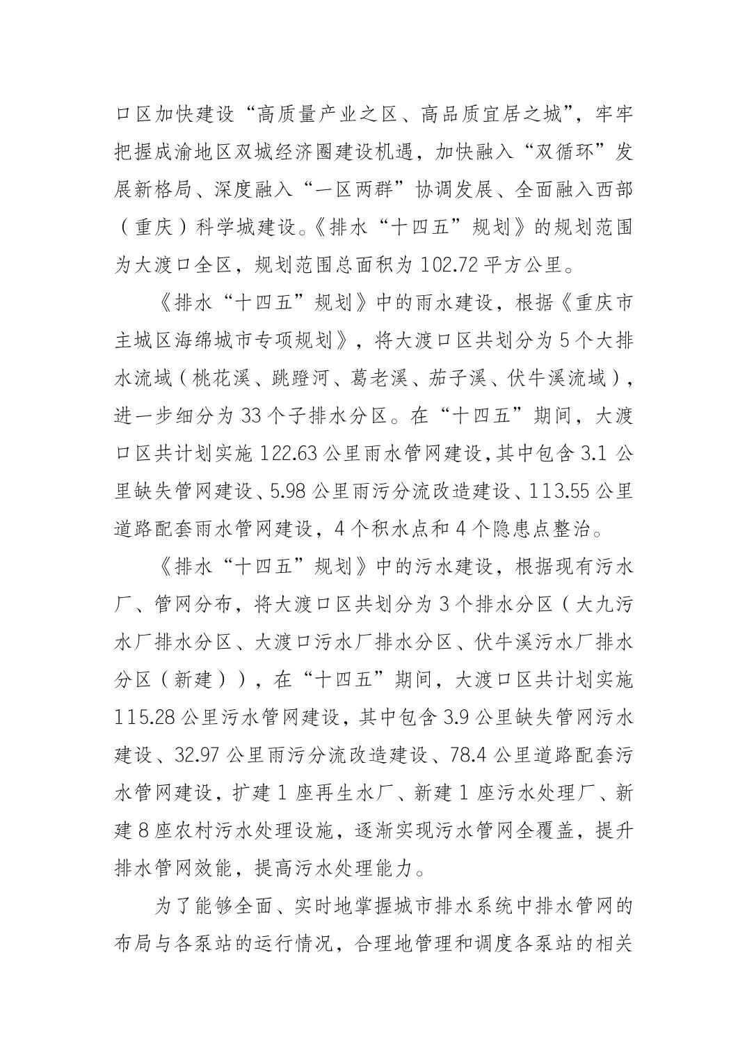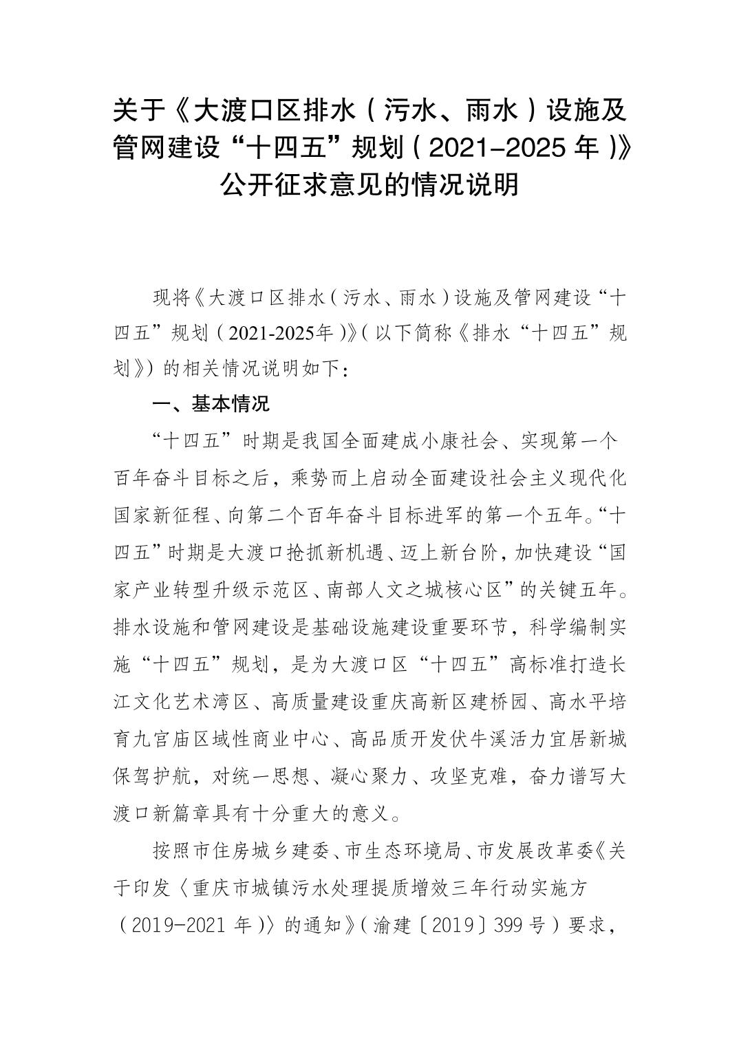 关于《大渡口区排水(污水、雨水)设施及管网建设“十四五”规划(2021-2025年)》 公开征求意见的情况说明