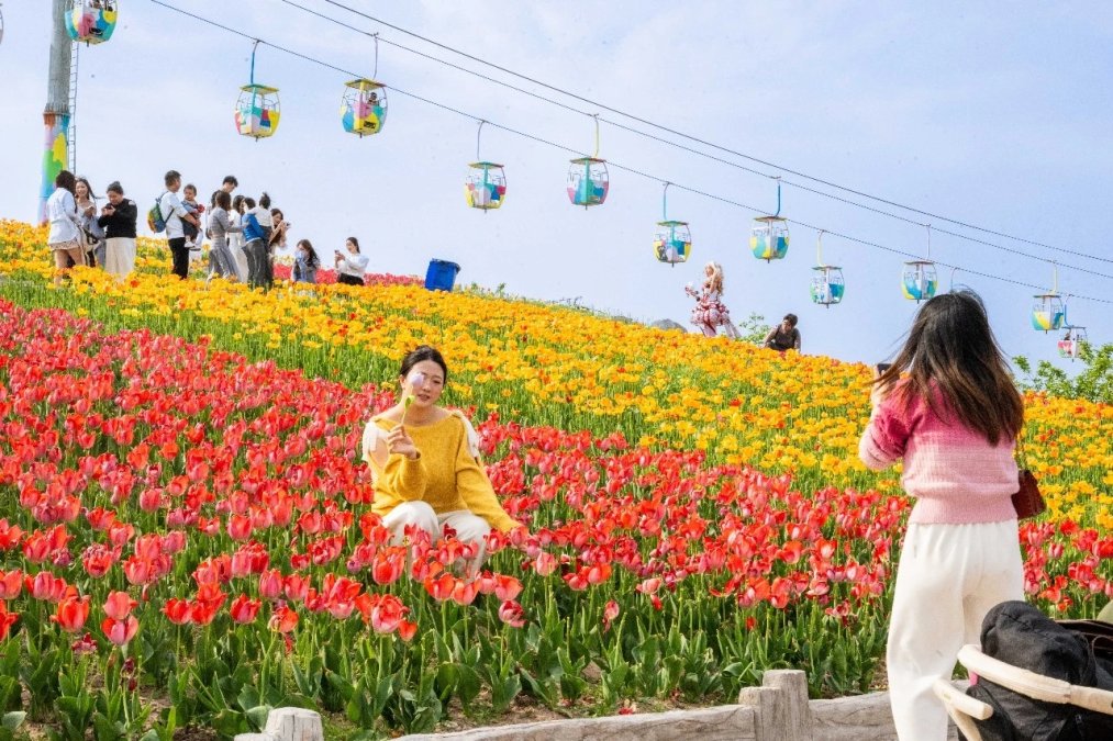 前段时间,云上田园景区种植了大量郁金香,就引来大量游客。“据统计,2月至3月上旬,景区平均每天要接待游客约1万人次。”陈传熹说,4月还将种植牡丹花、樱花、鲁冰花等,5月有玫瑰花,六七月有向日葵等,让游客一年四季都有花可赏。景区还打造了萌宠乐园、亲子乐园、云端营地、高空魔网等项目,丰富业态,刺激消费。