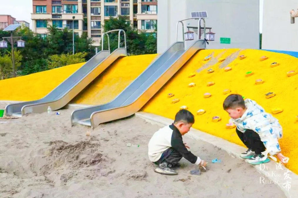 顺馨公园北区紧邻艺境博苑湾塘路南侧,重点打造亲子同乐空间,配备儿童滑梯、沙坑玩乐区及老年健身器材,兼顾老人与孩子的休闲需求,成为家庭日常游玩的好去处。