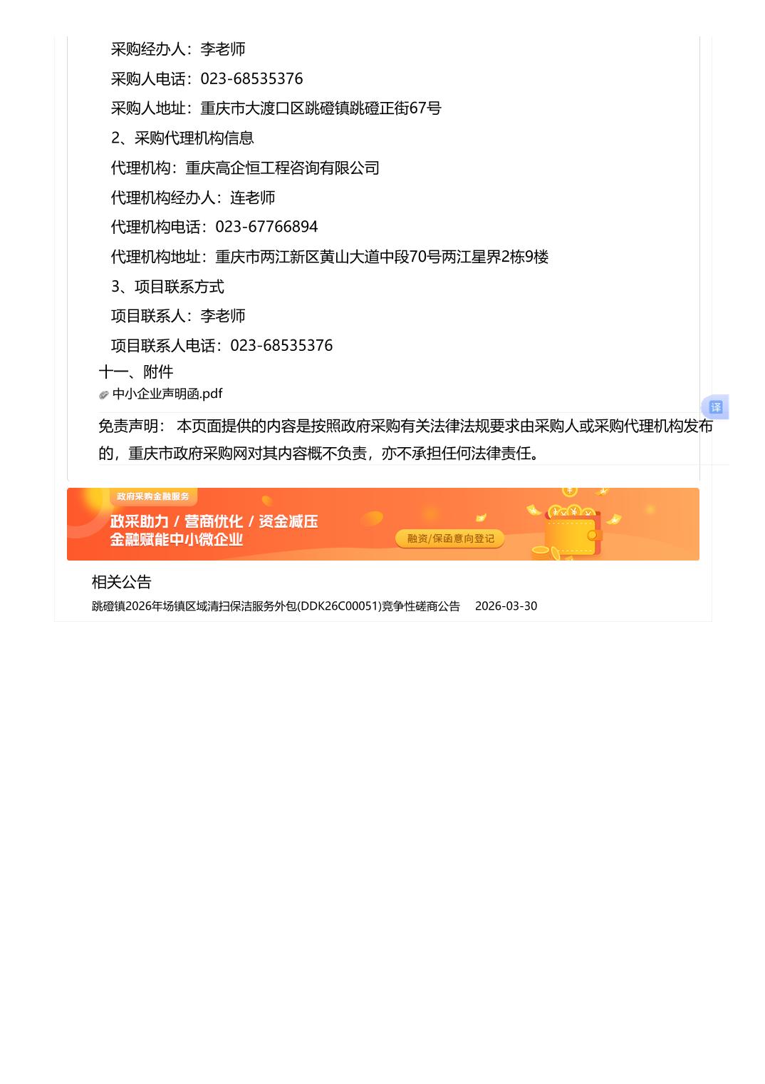 跳磴镇2026年场镇区域清扫保洁服务外包(DDK26C00051)中标(成交)结果公告