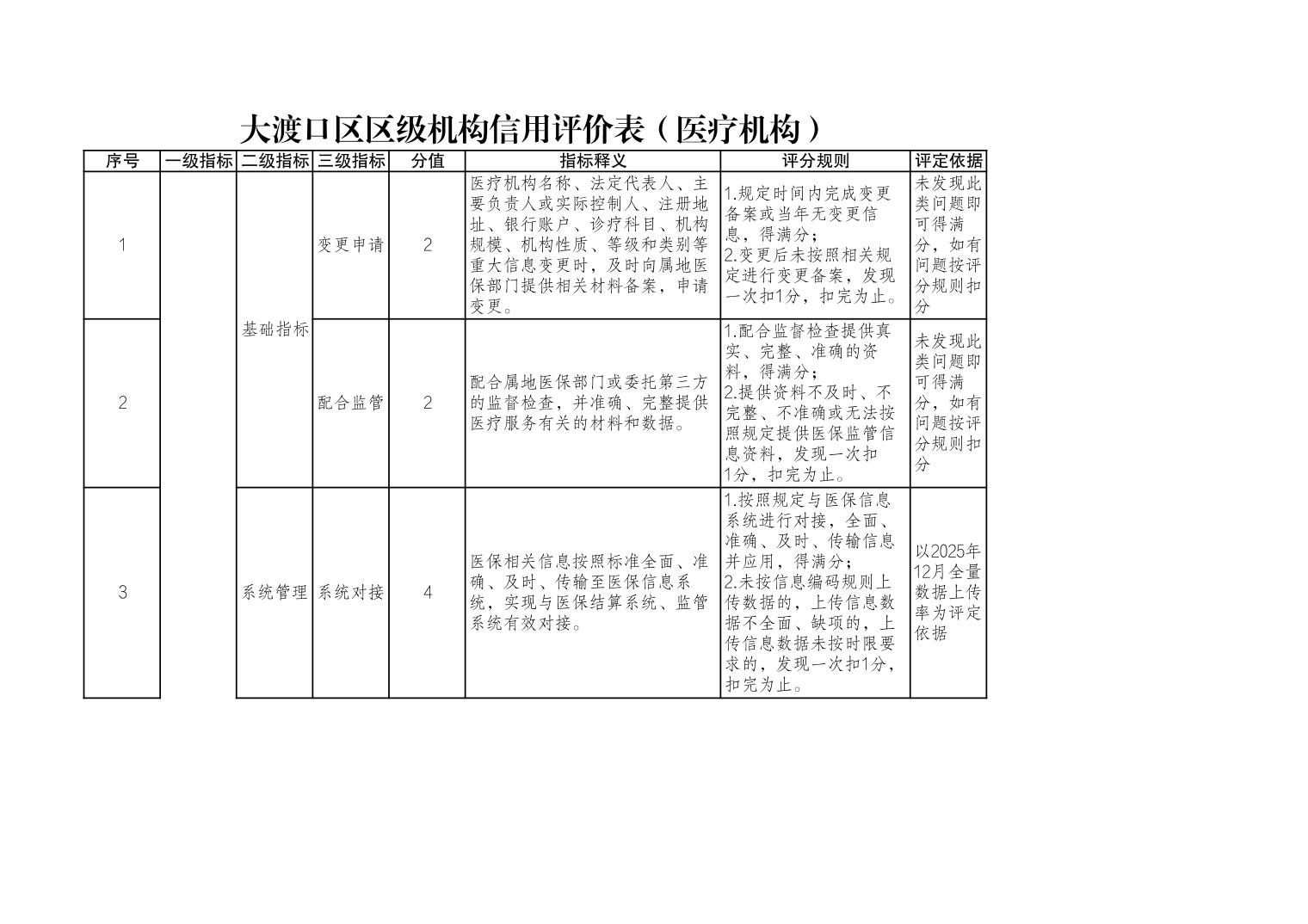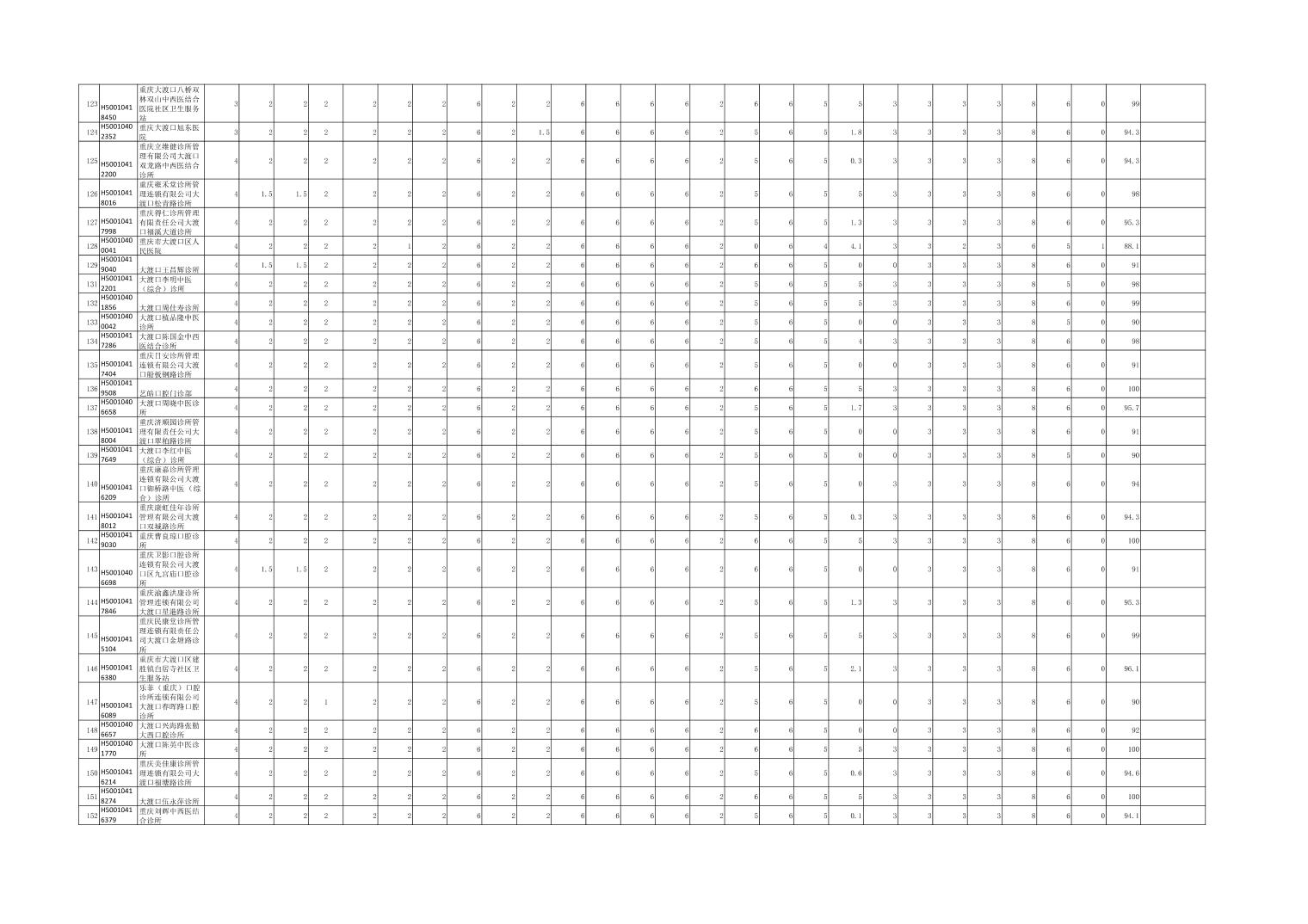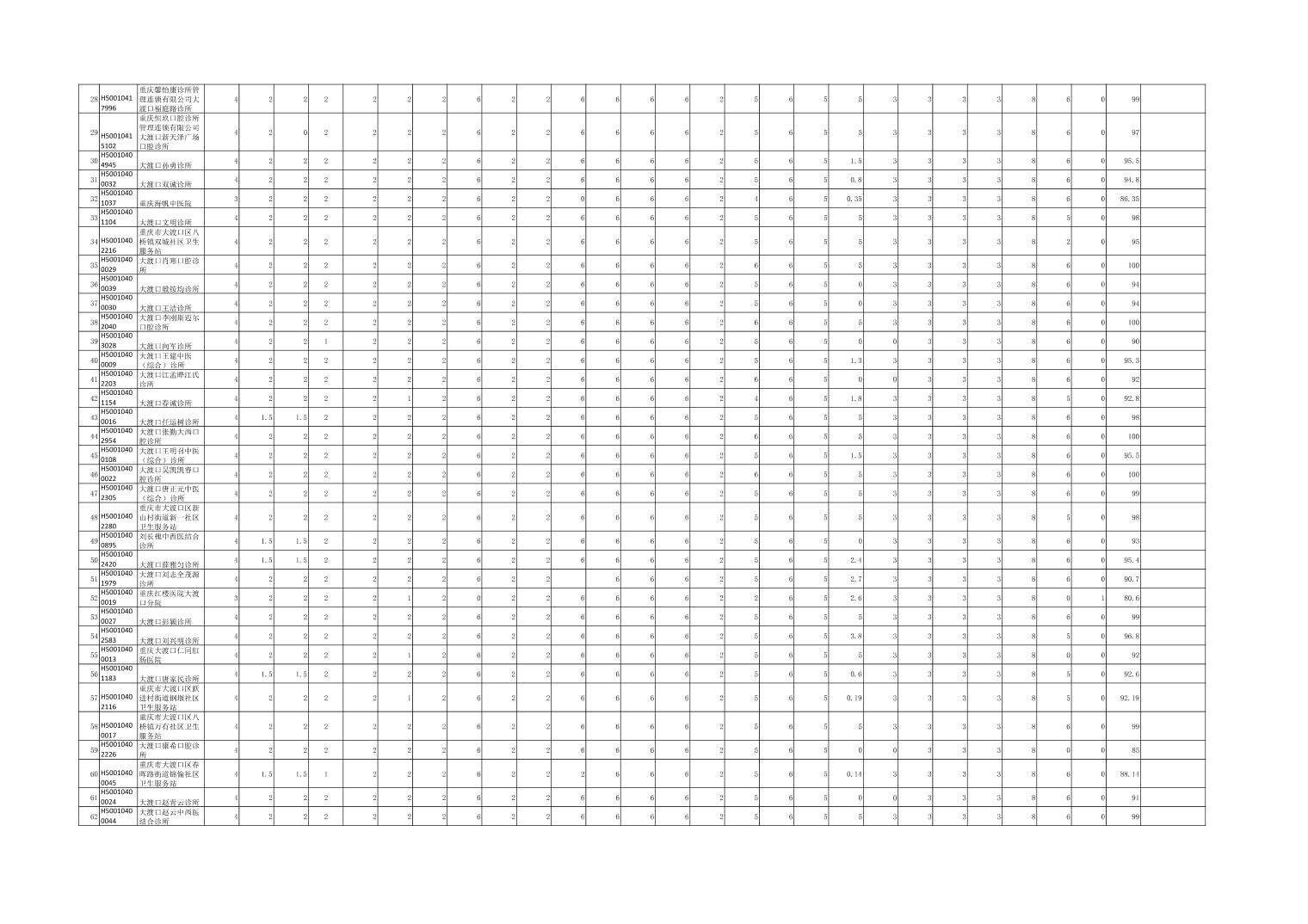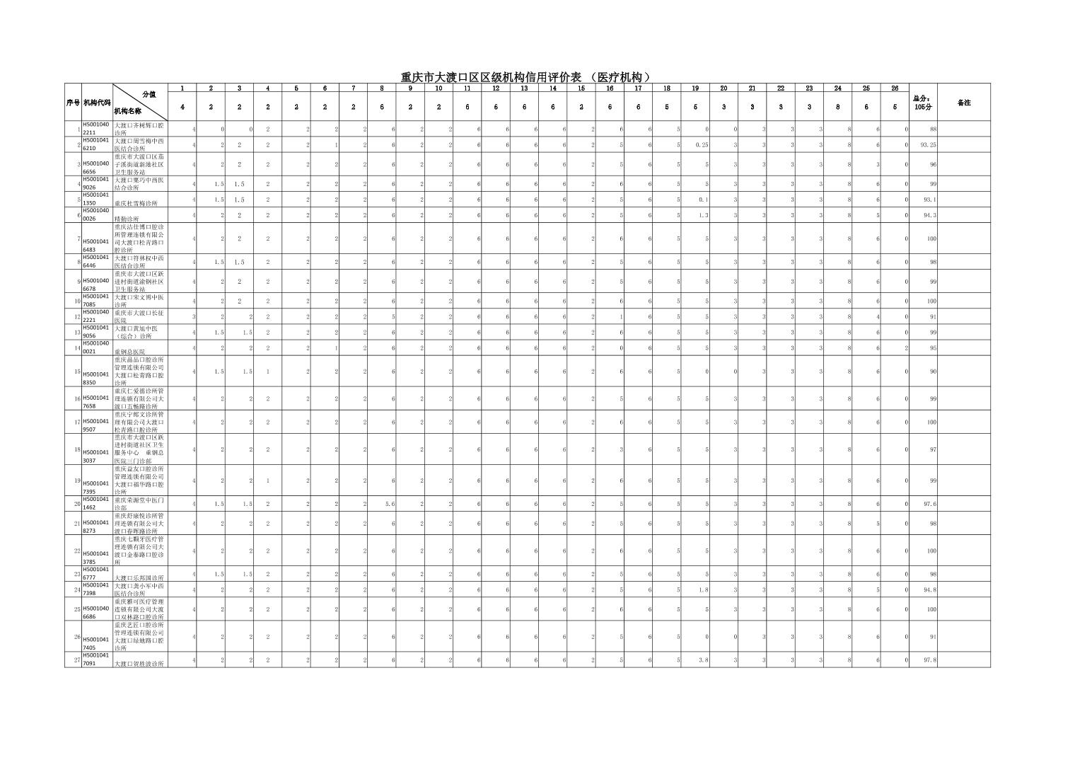 大渡口区级两定机构信用评价表(医疗机构)公示