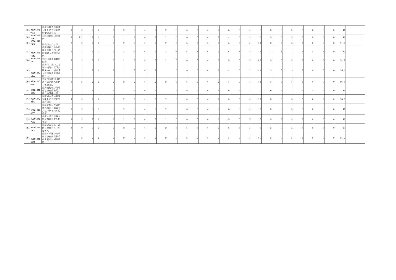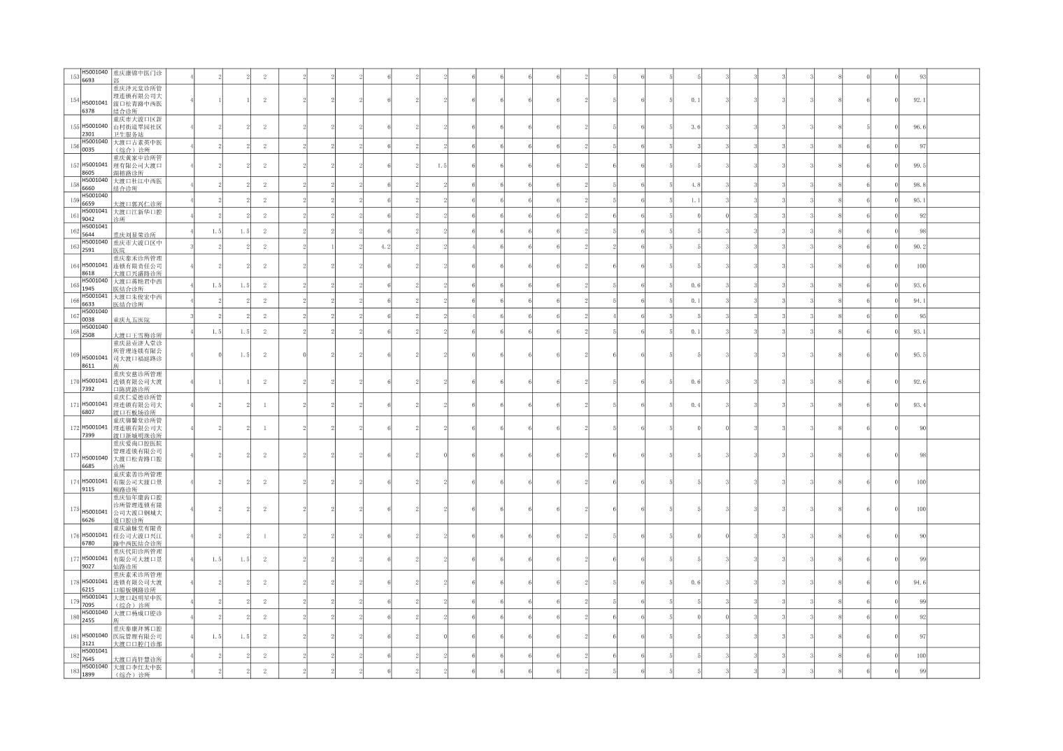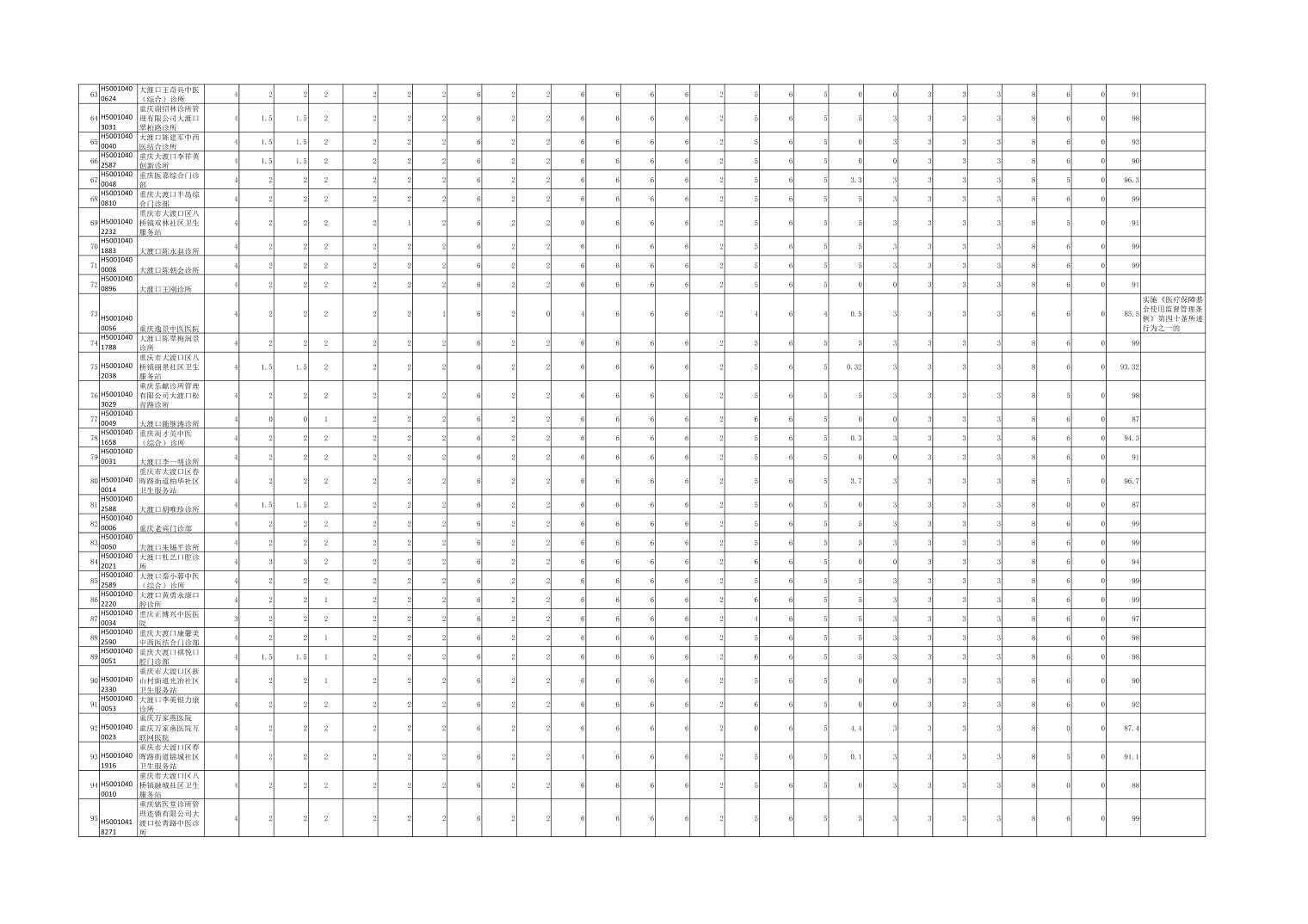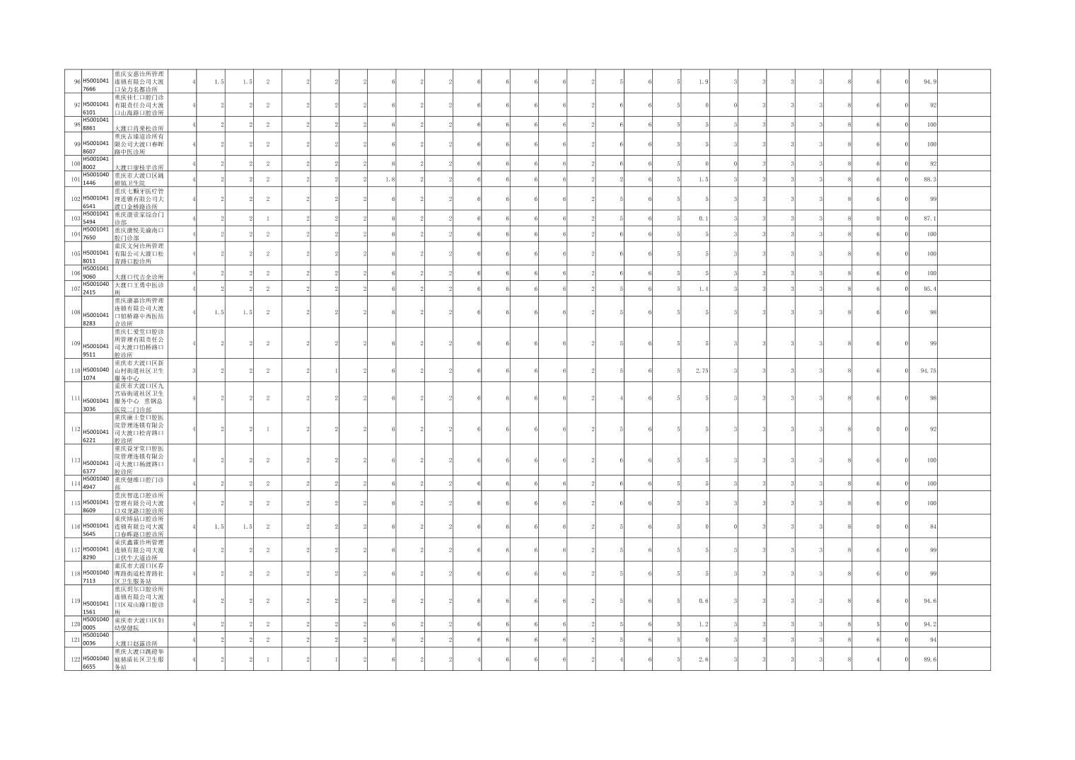 大渡口区级两定机构信用评价表(医疗机构)公示