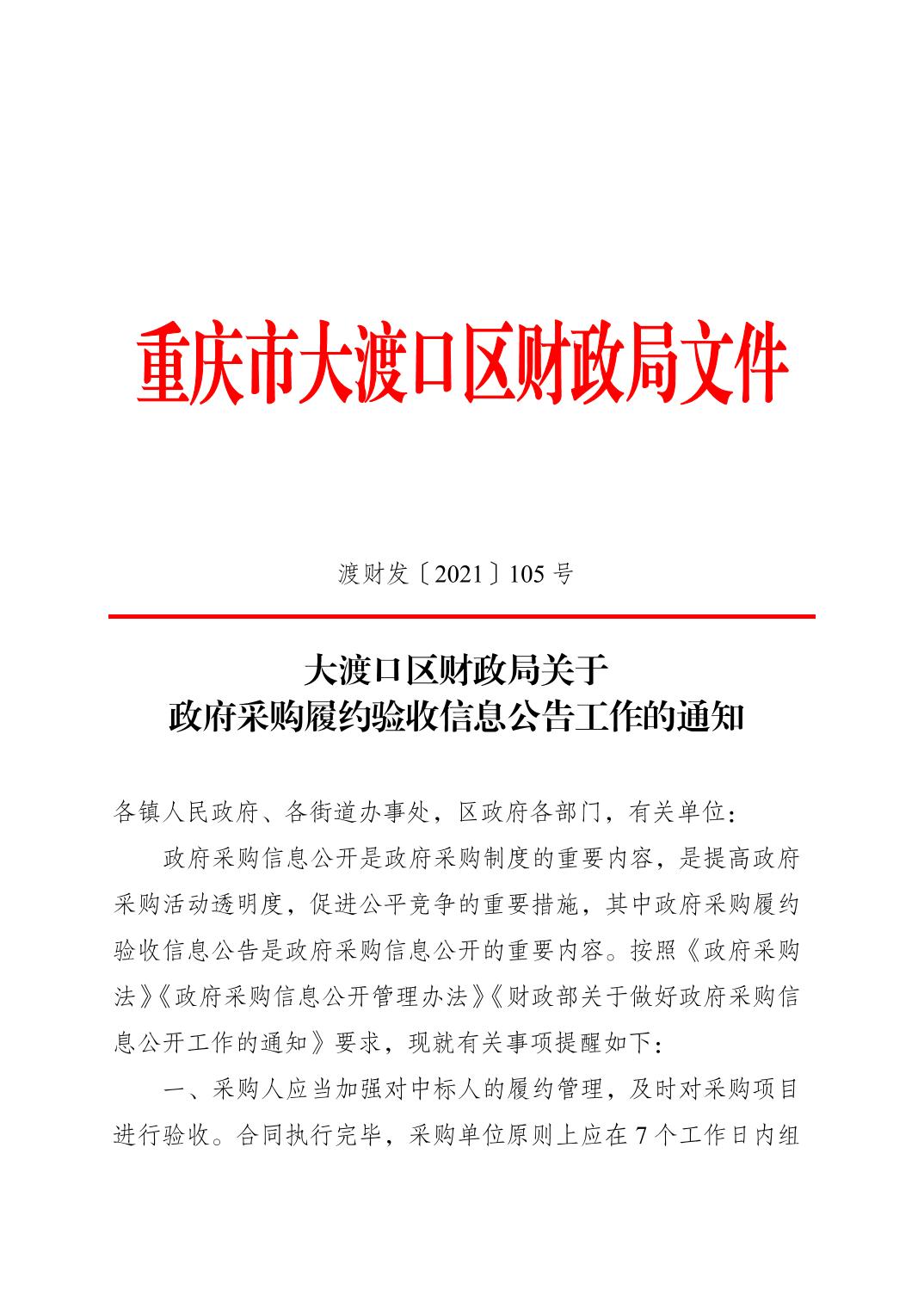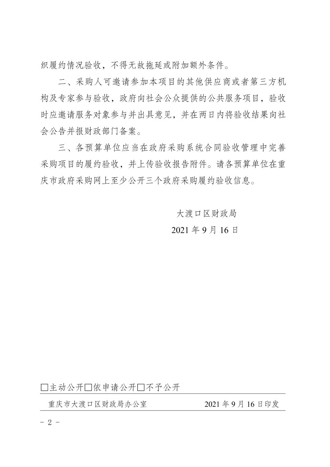 重庆市大渡口区财政局关于政府采购履约验收信息公告工作的通知