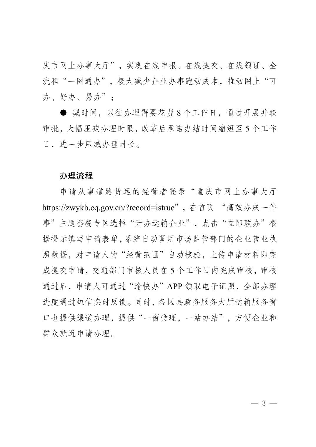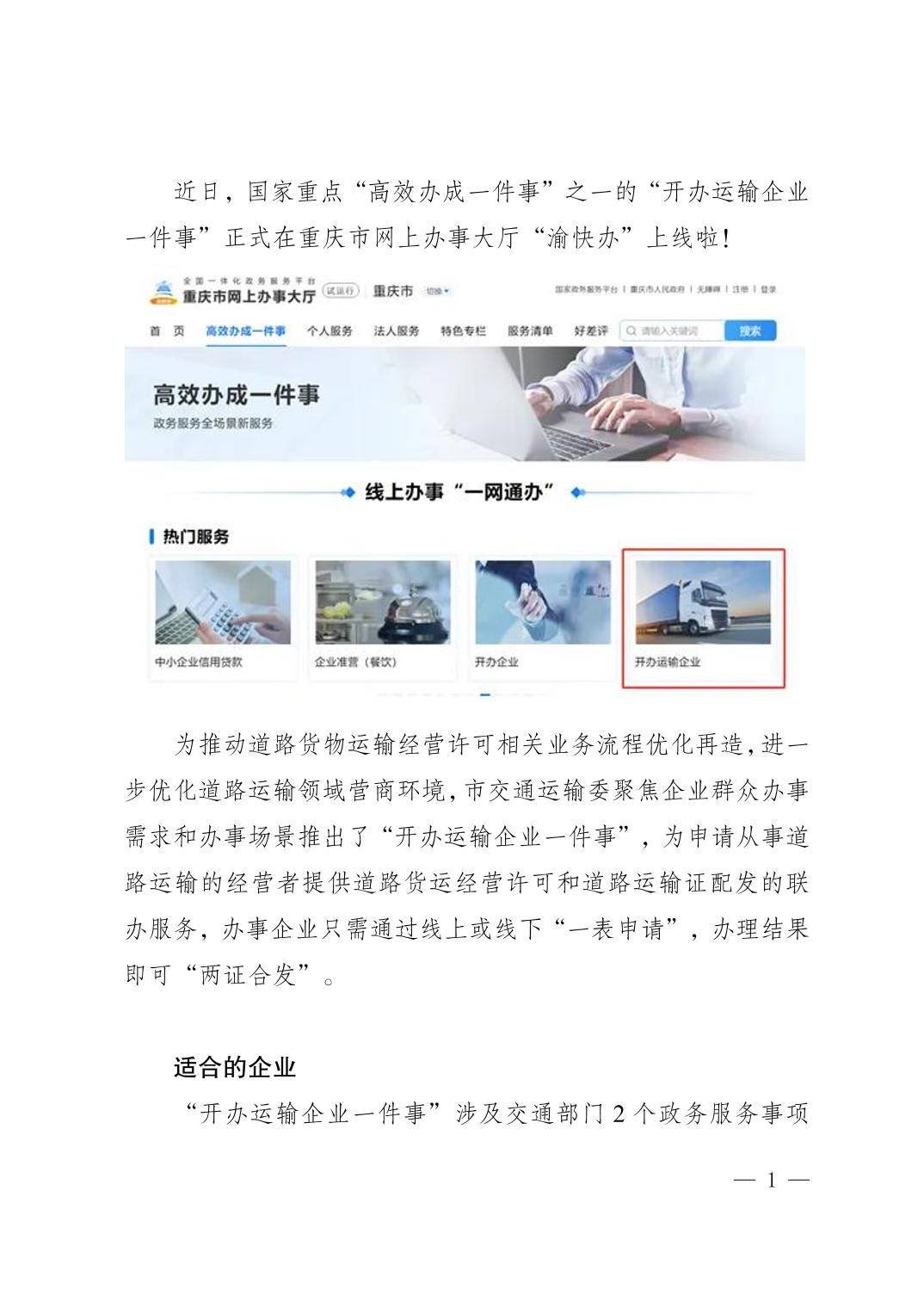 重庆市“开办运输企业一件事”正式上线啦!
