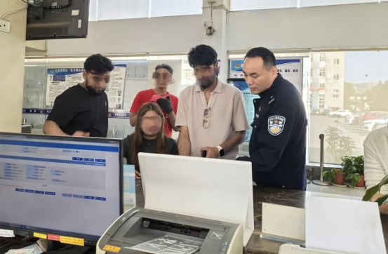 “别担心!”民警杨成方敏锐地发现了这位神情焦虑的外籍女士,立即上前用英语与她沟通。在快速梳理需求后,民警一边协助联系其居住地辖区派出所重新办理临时住宿登记,一边耐心帮助她核对整理过户所需的其他材料,讲解相关规定。从发现问题到协调沟通,从信息更新到业务办结,整个过程民警熟练办理,耐心解答,不仅高效解决了莎希达女士的实际困难,更让她真切感受到了跨越国界的温暖。业务办结后,莎希达女士难掩激动之情,连连为车管所的暖心服务点赞。