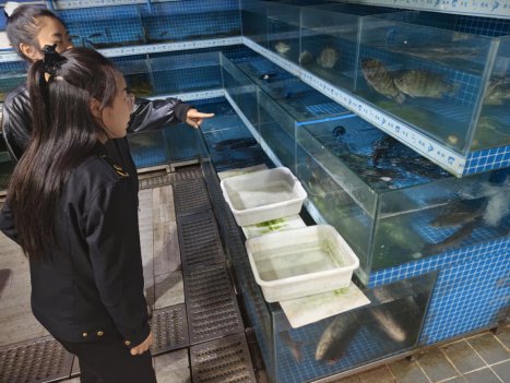 “没有‘身份证’的鱼,再便宜也不能进市场。”执法人员检查鱼缸、水箱中的活鱼是否与台账记录相符,严防来历不明的野生鱼混入销售。