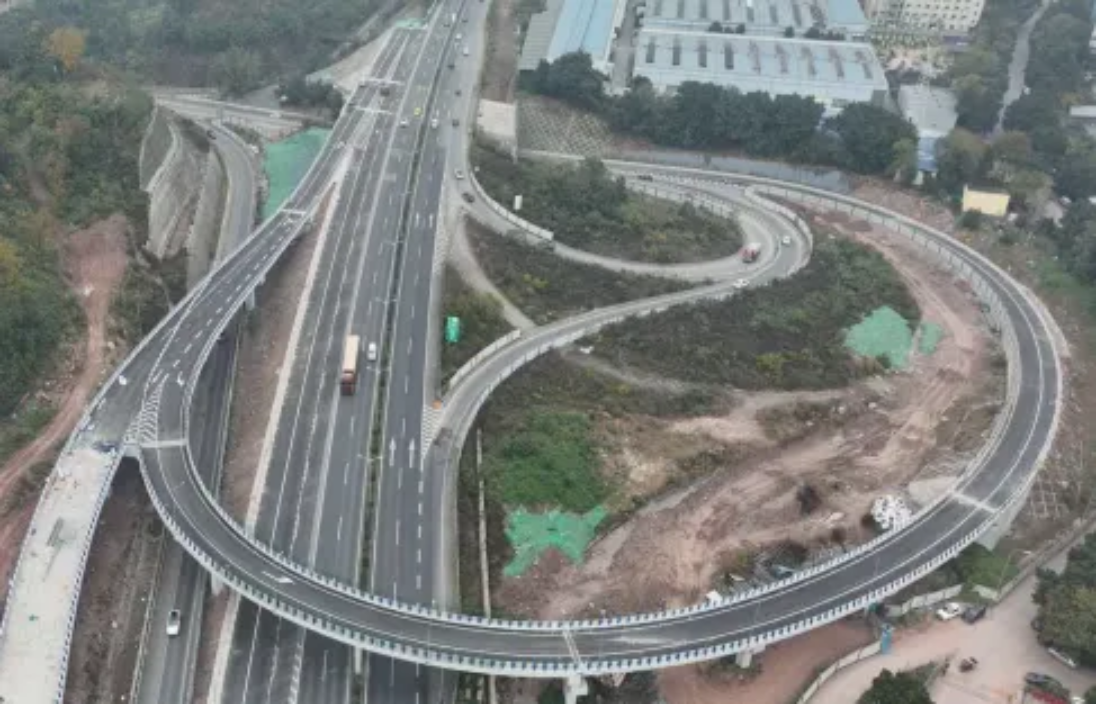 近日,渝武高速拓宽改造工程翡翠立交F匝道正式建成通车。