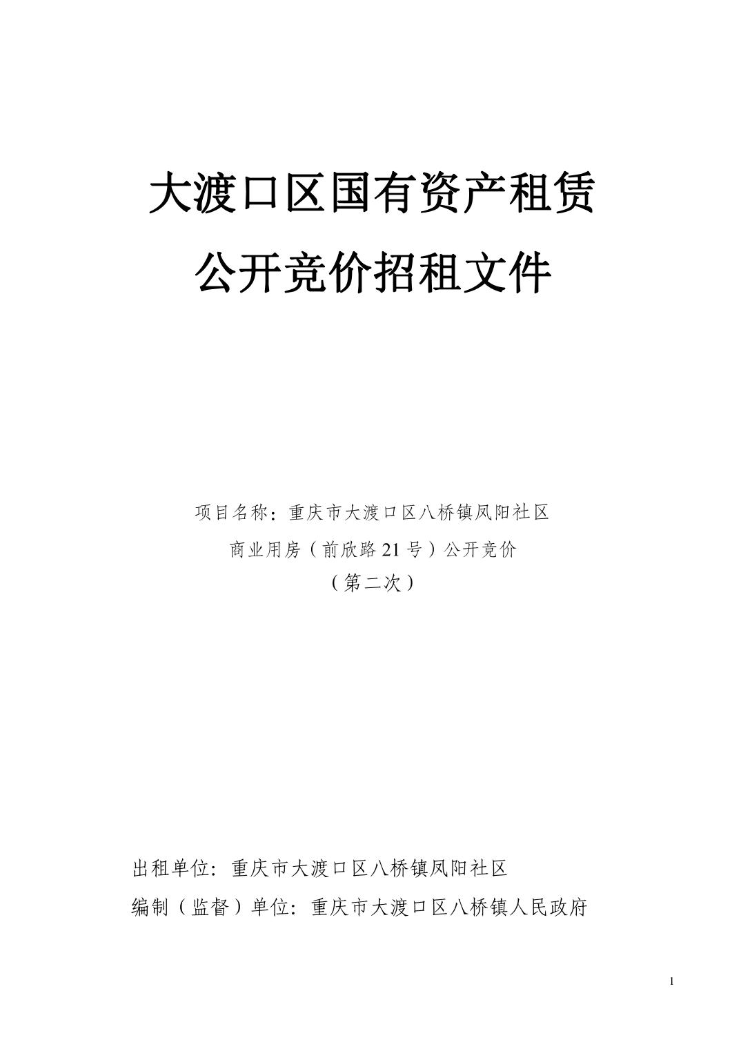 八桥镇凤阳社区商业用房(前欣路21号)招租文件(第二次)