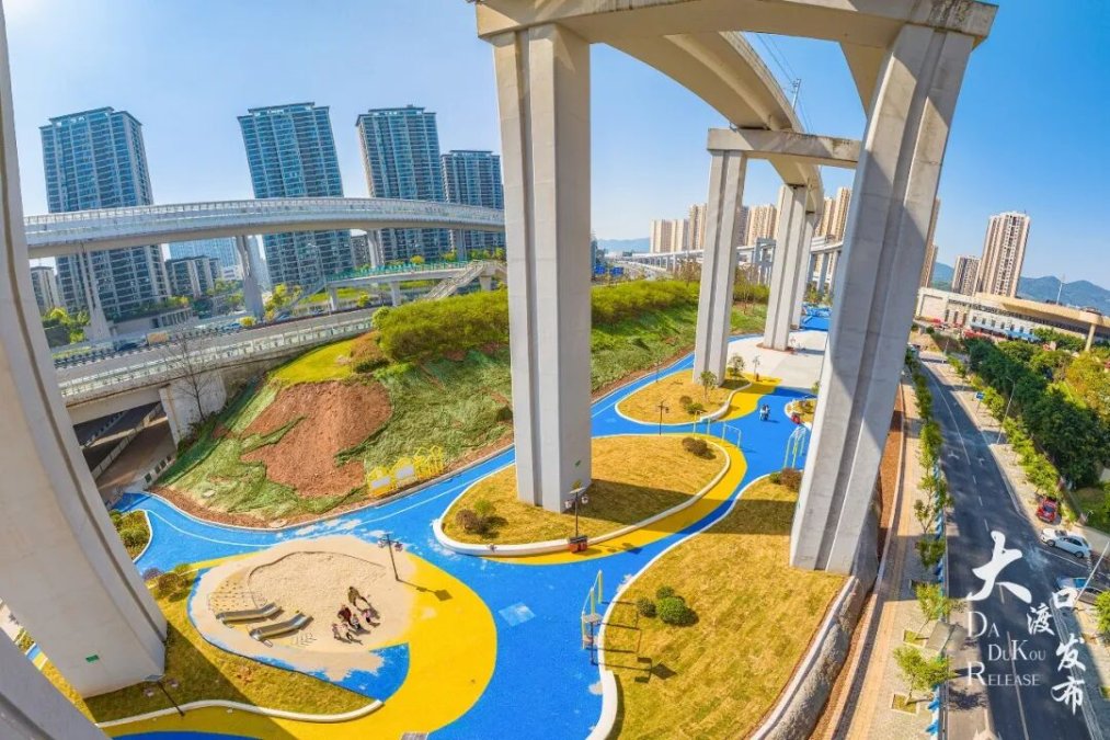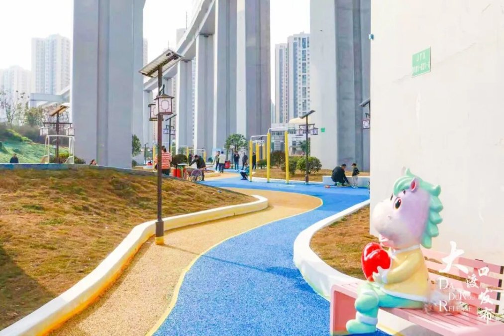 顺馨公园位于大渡口区跳磴镇中顺大道北侧、轨道江跳线高架桥下方,占地约8000平方米,是跳磴镇落实城市绿化提升工作要求的重点民生项目。