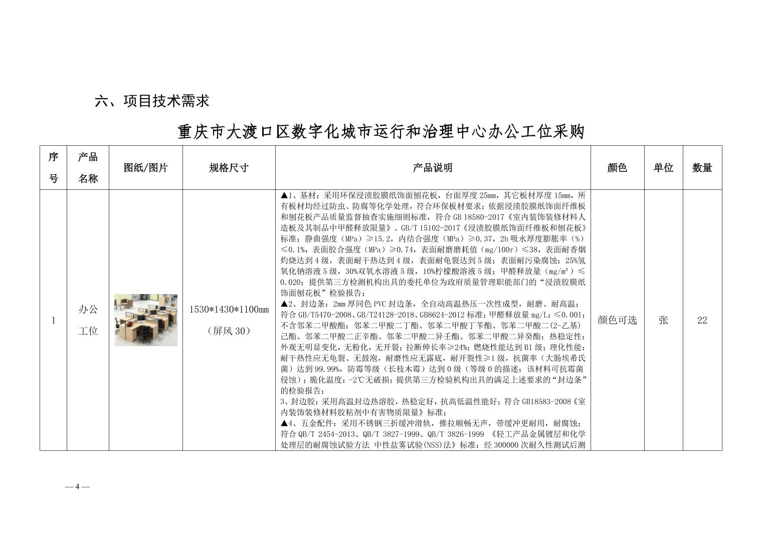 重庆市大渡口区数字化城市运行和治理中心办公工位采购