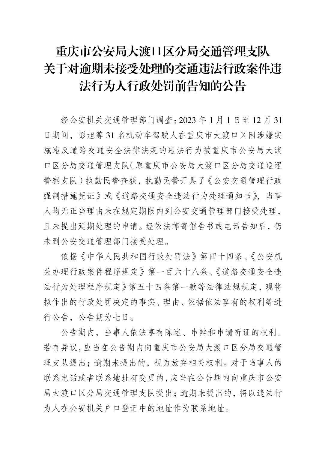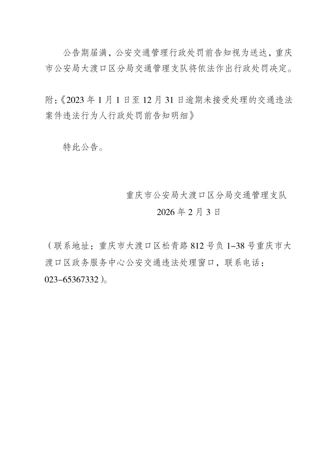 附:2023年1月1日至12月31日逾期未接受处理的交通违法案件违法行为人行政处罚前告知明细.xls
